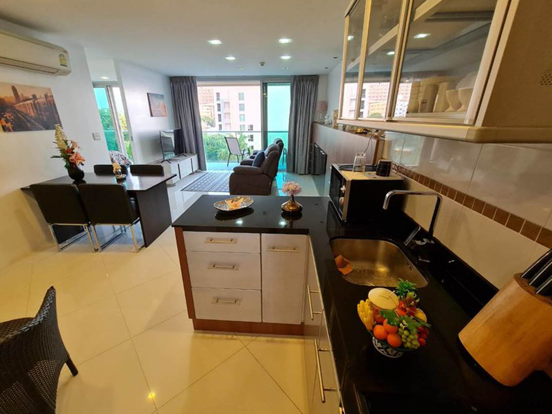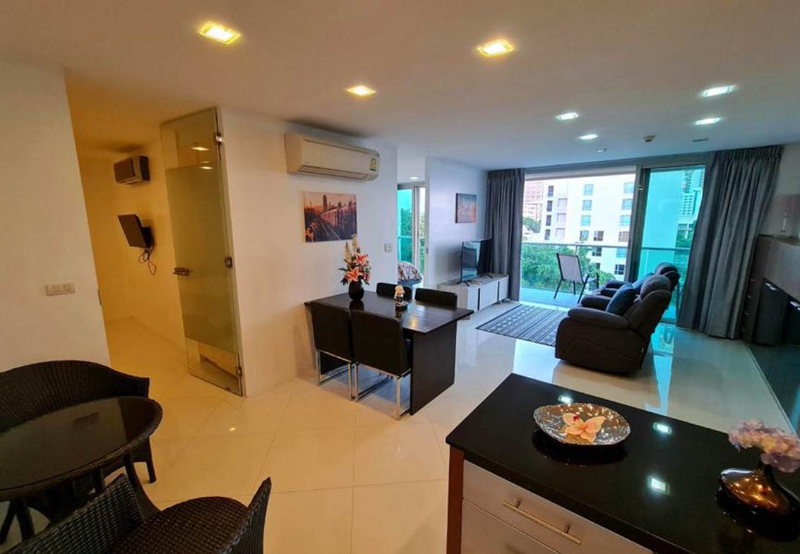 Ananya Beachfront Condominium low-rise condominium is in the Wongamat area, the exclusive location that allows the residents to experience blissful beachfront living while providing a homely feeling. This 2-bedroom 2-bathroom unit is situated on the 7 floor, offering 82.88 sqm of living space. It comes fully furnished with a modern kitchen, a dining area, and living area. This unit is for rent ready to move in.