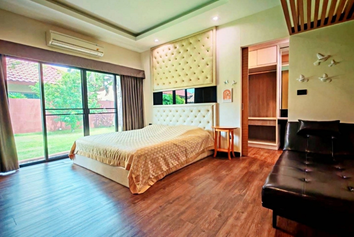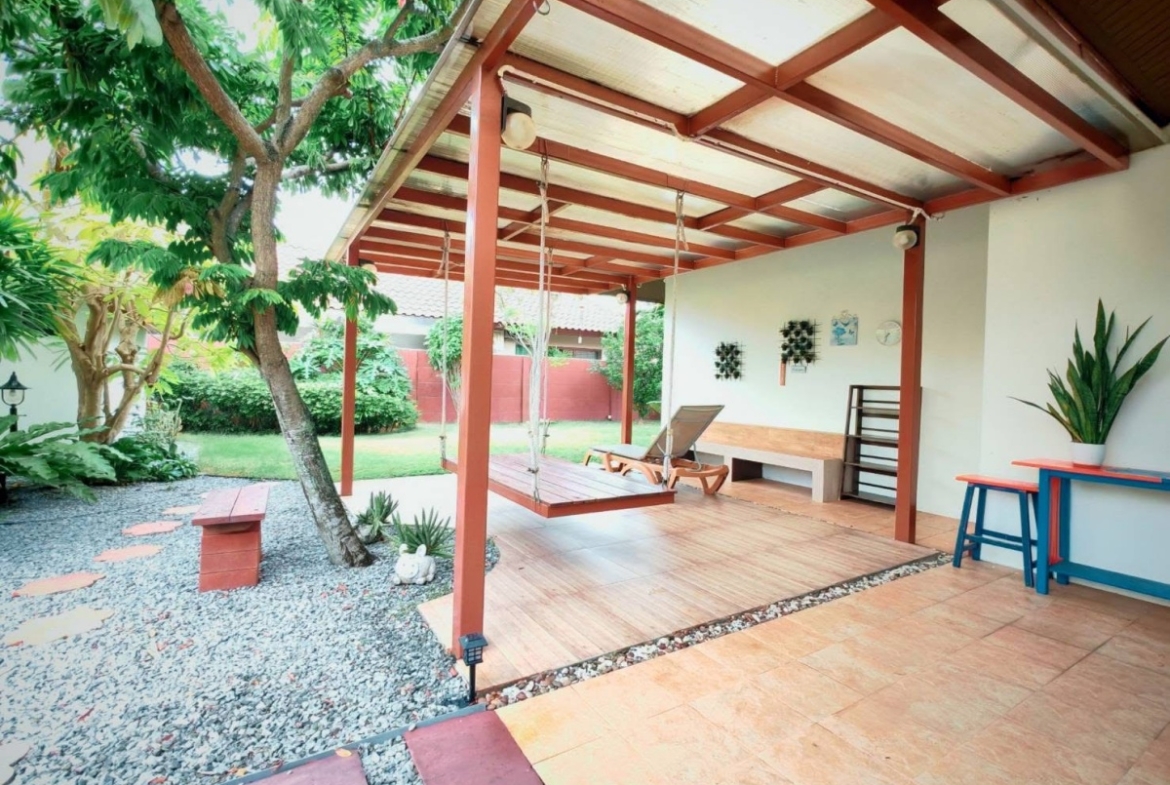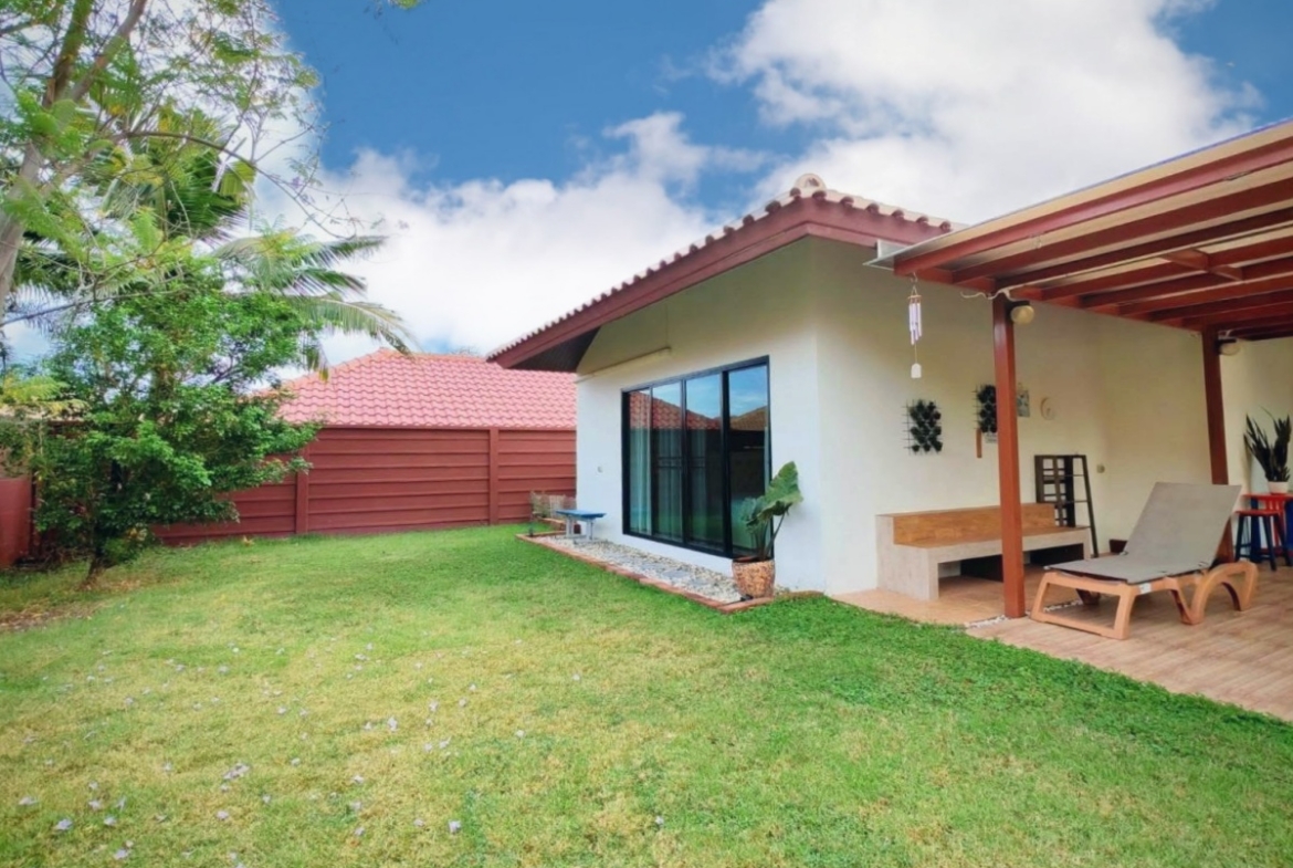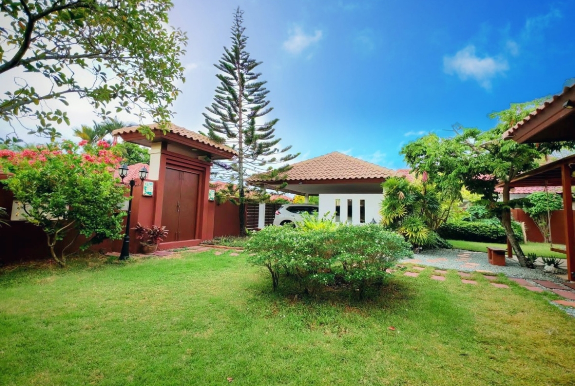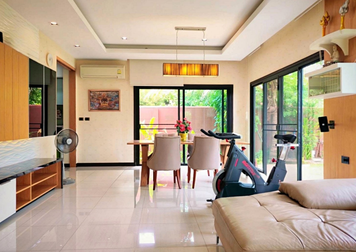 Baan Balina 4 is a house project developed by Baan Pattaya 5, and construction was completed in 2014. Baan Balina 4 is in Huay yai and is a perfect home for anyone looking for a resort-style villa. The facilities include a private pool, gym, clubhouse, and 24-hour security. This house features 2 bedrooms and 2 bathrooms, and offers 200 sq.m of living area, 135.10 plot of land. It comes fully furnished with a European kitchen, a dining area, a large living room, a storage room, covered parking, a private garden. This house is available for rent and sale in Thai name and is ready to move in!