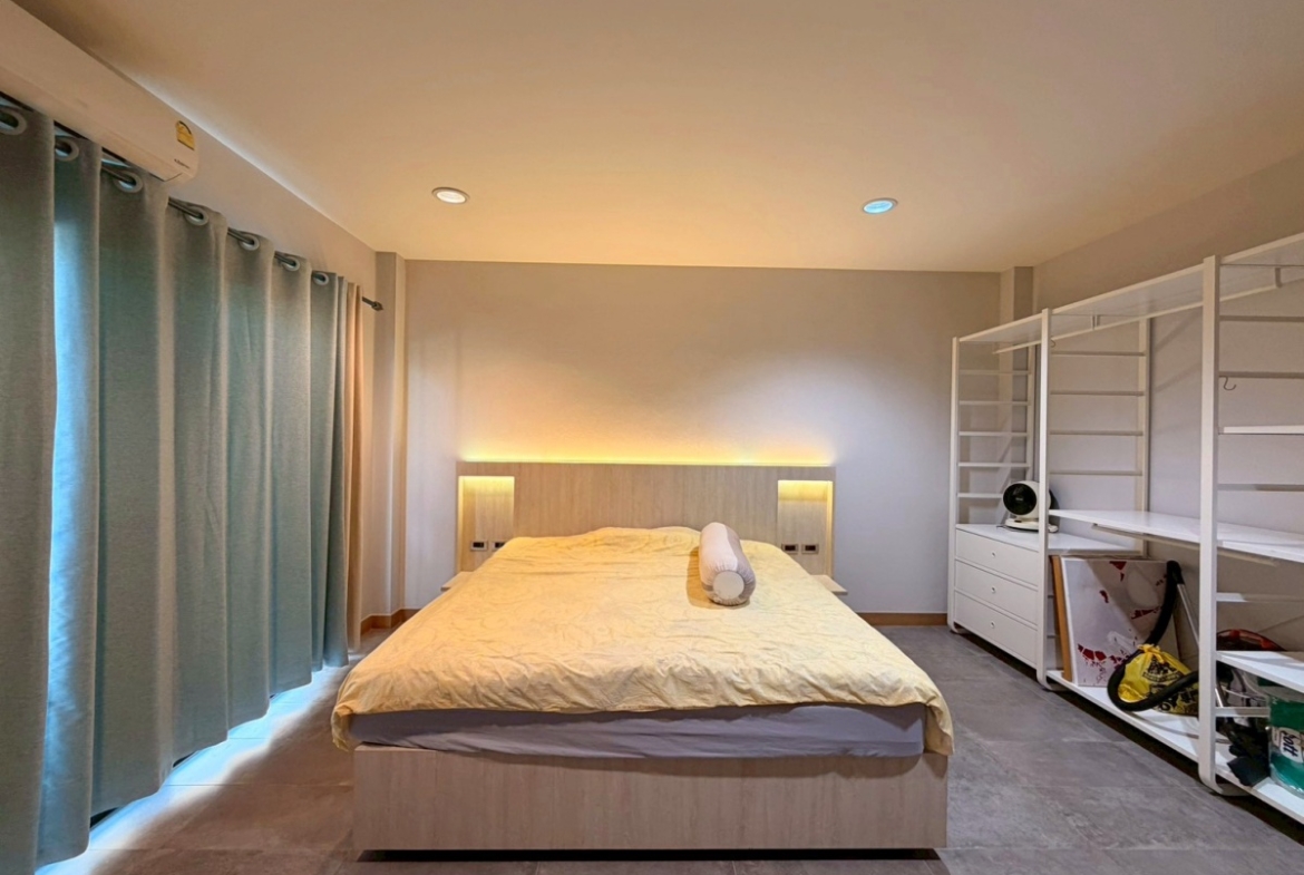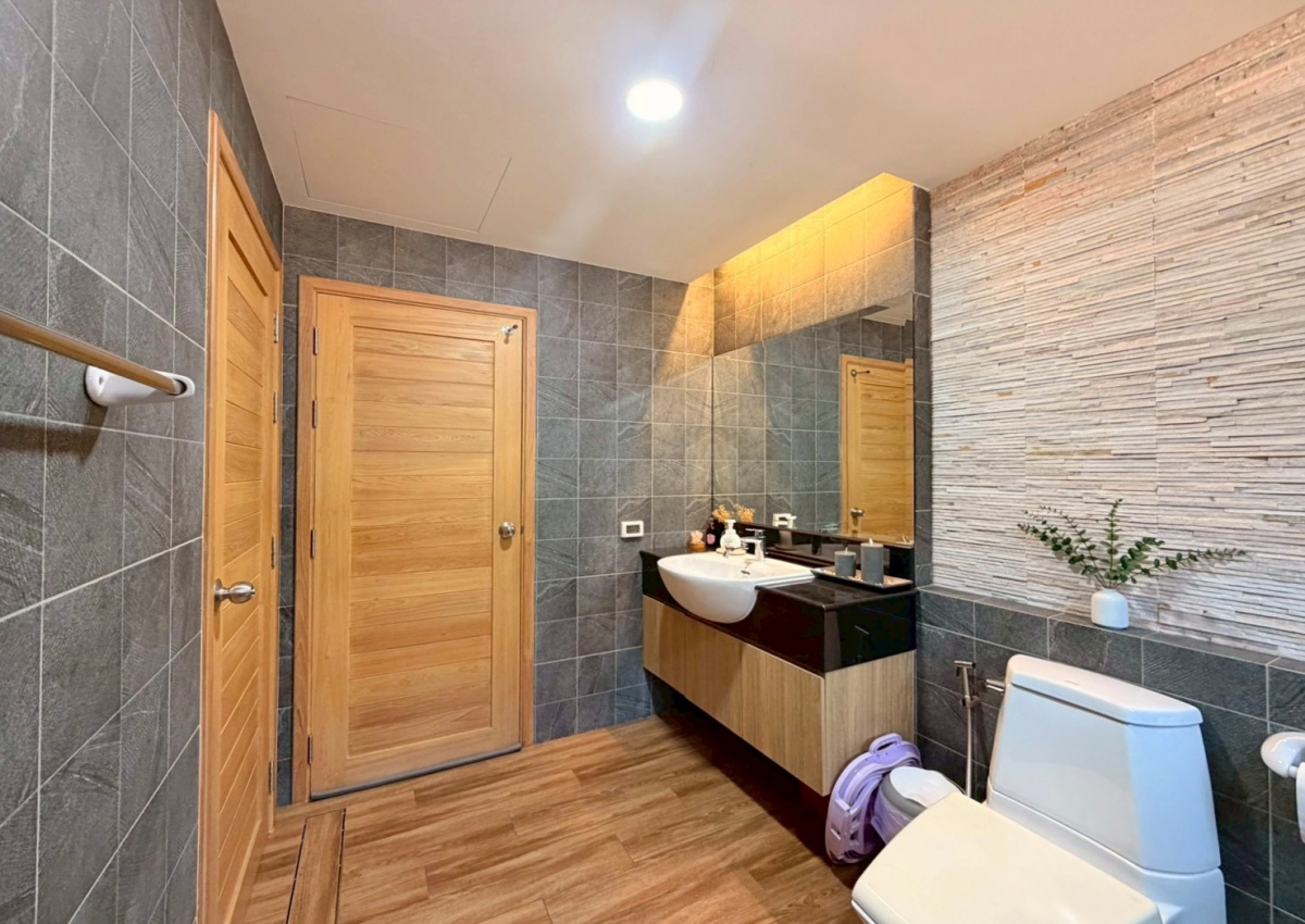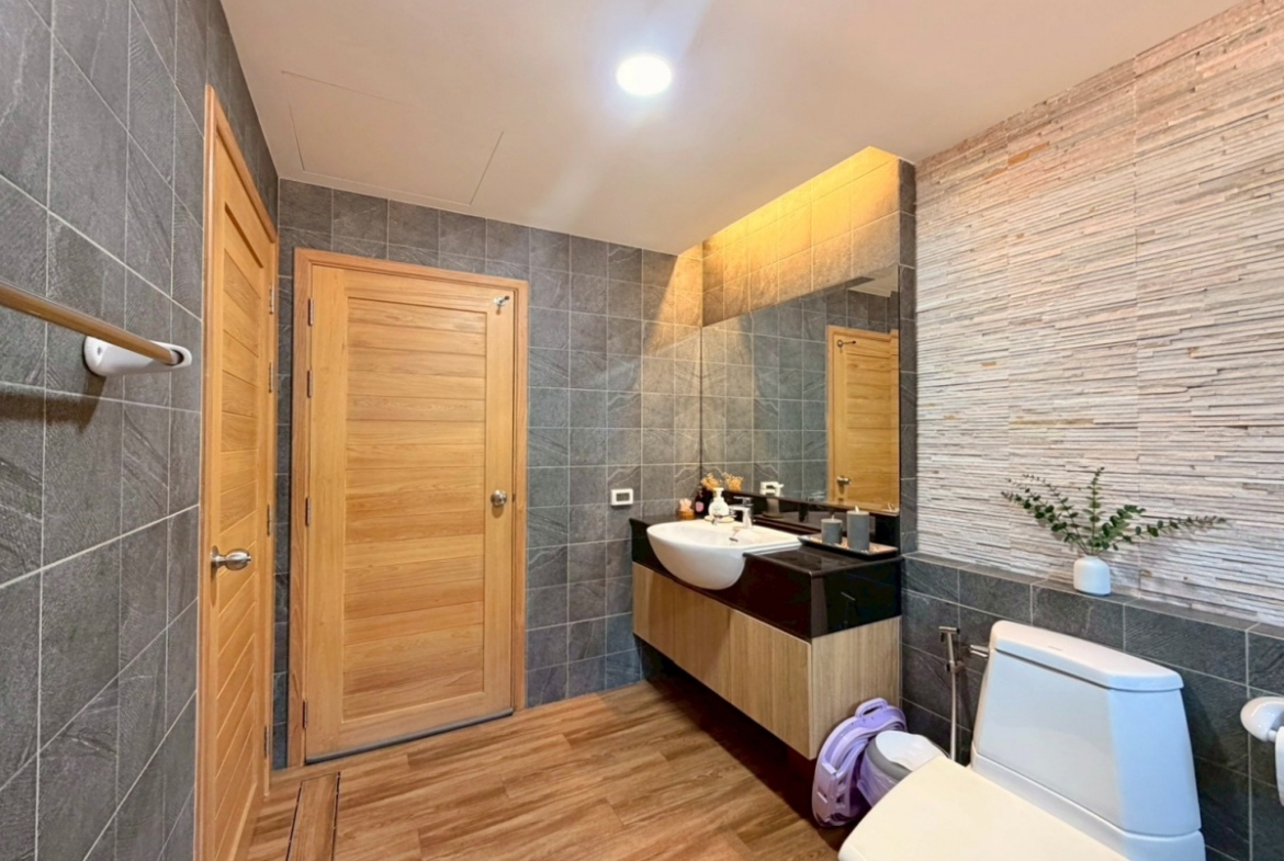 Baan Pattaya 5 A housing project. The architectural design focuses on simplicity while remaining hidden in luxury. The interior design is exquisite, with built-in woodwork in the bedroom, living room, and bathroom. The project offers complete facilities, such as a 24-hour security system with CCTV throughout the project area, a fully equipped fitness center, and a swimming pool.