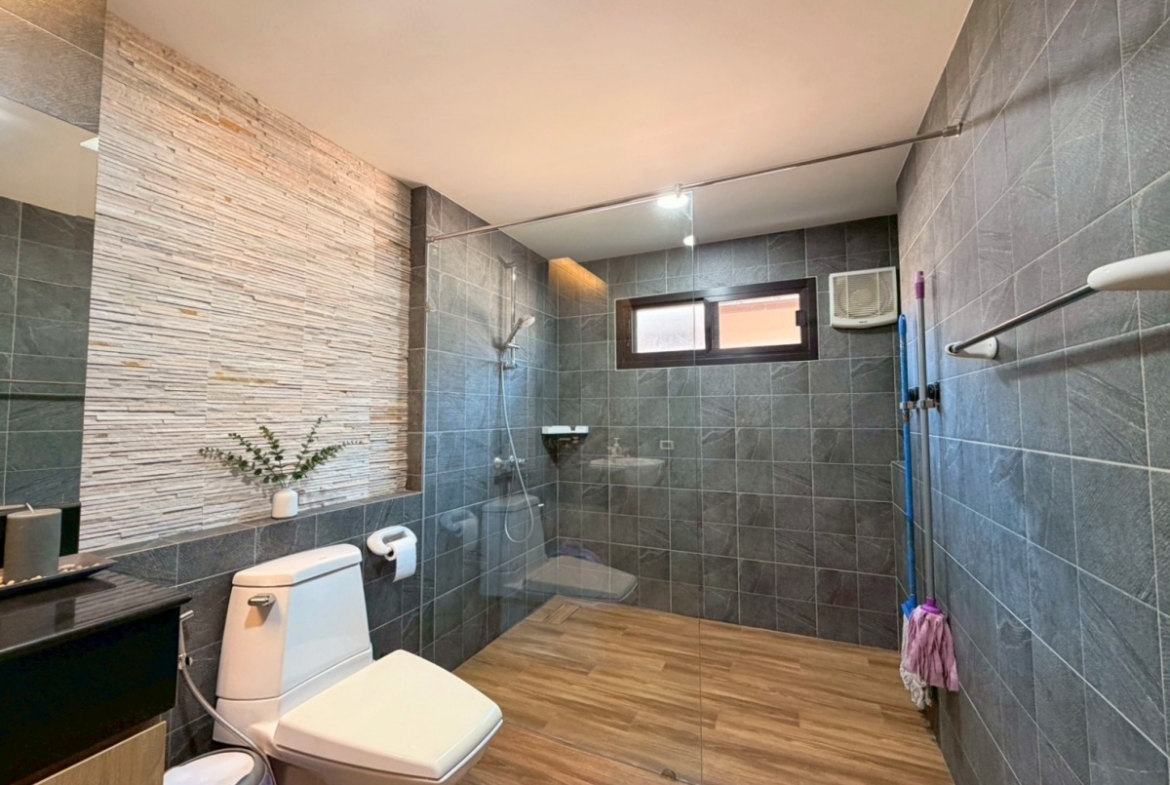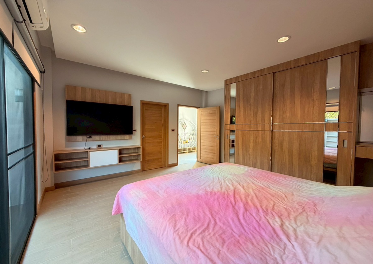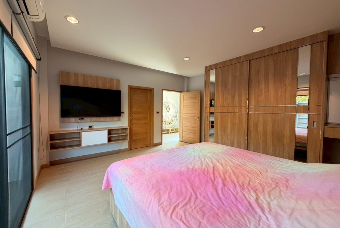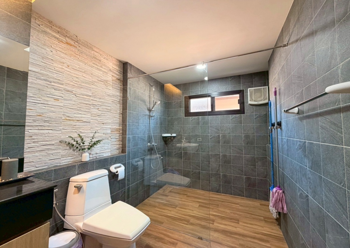 Baan Pattaya 5 A housing project. The architectural design focuses on simplicity while remaining hidden in luxury. The interior design is exquisite, with built-in woodwork in the bedroom, living room, and bathroom. The project offers complete facilities, such as a 24-hour security system with CCTV throughout the project area, a fully equipped fitness center, and a swimming pool.