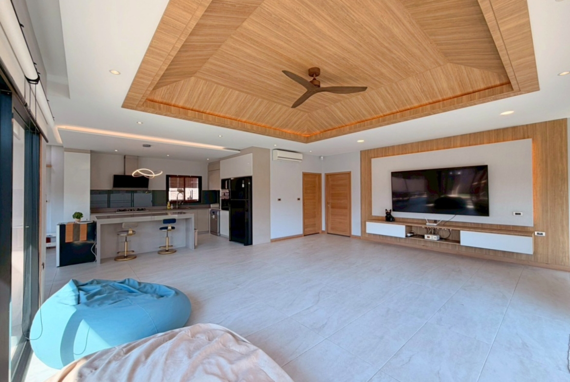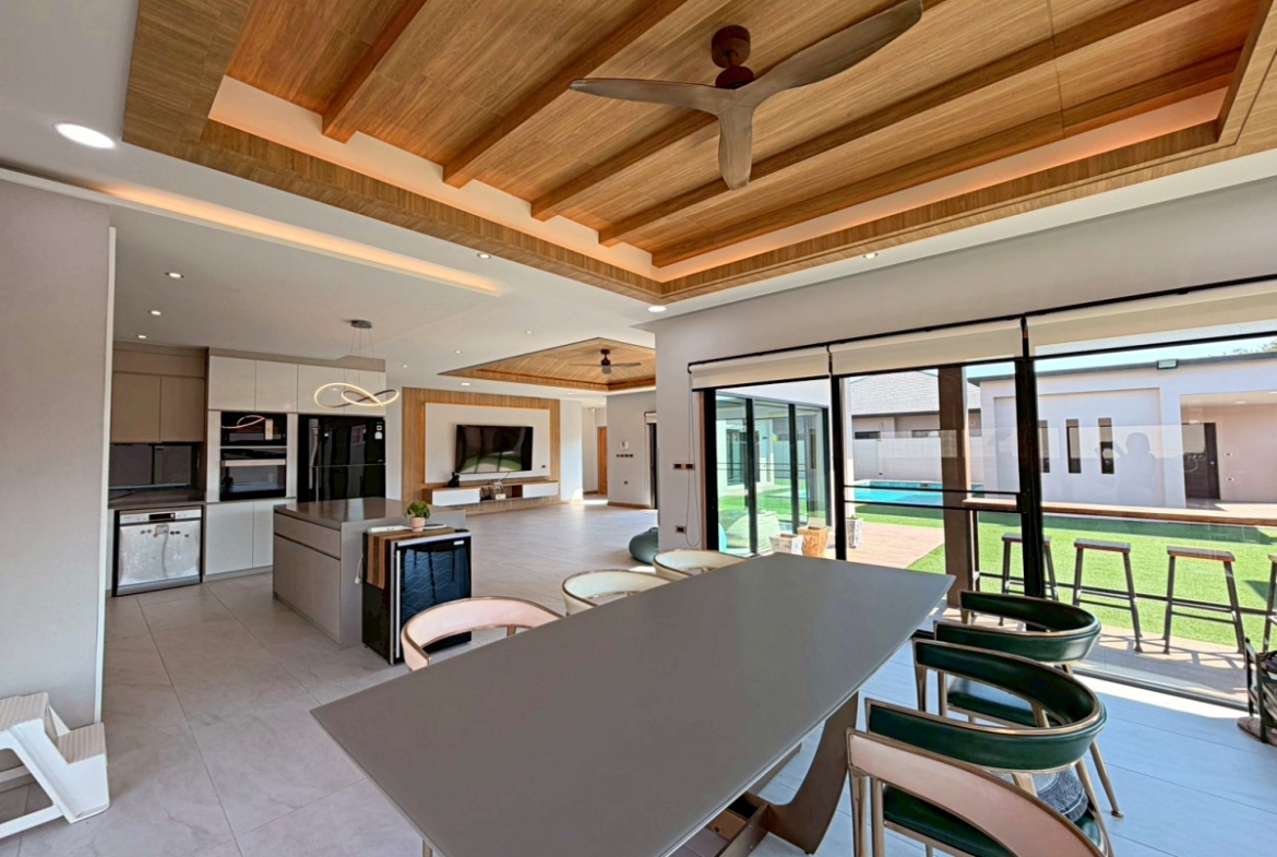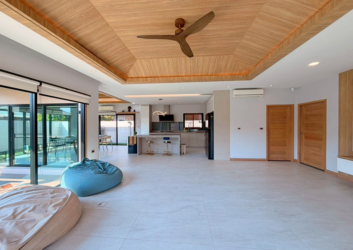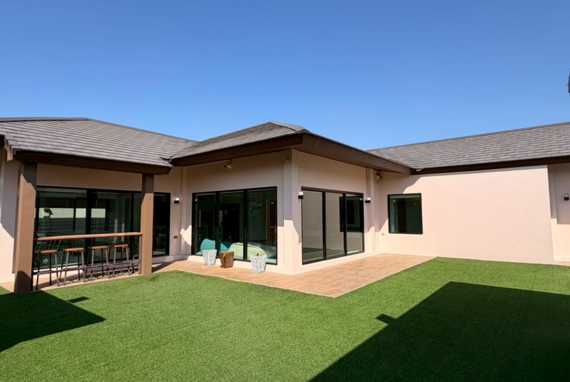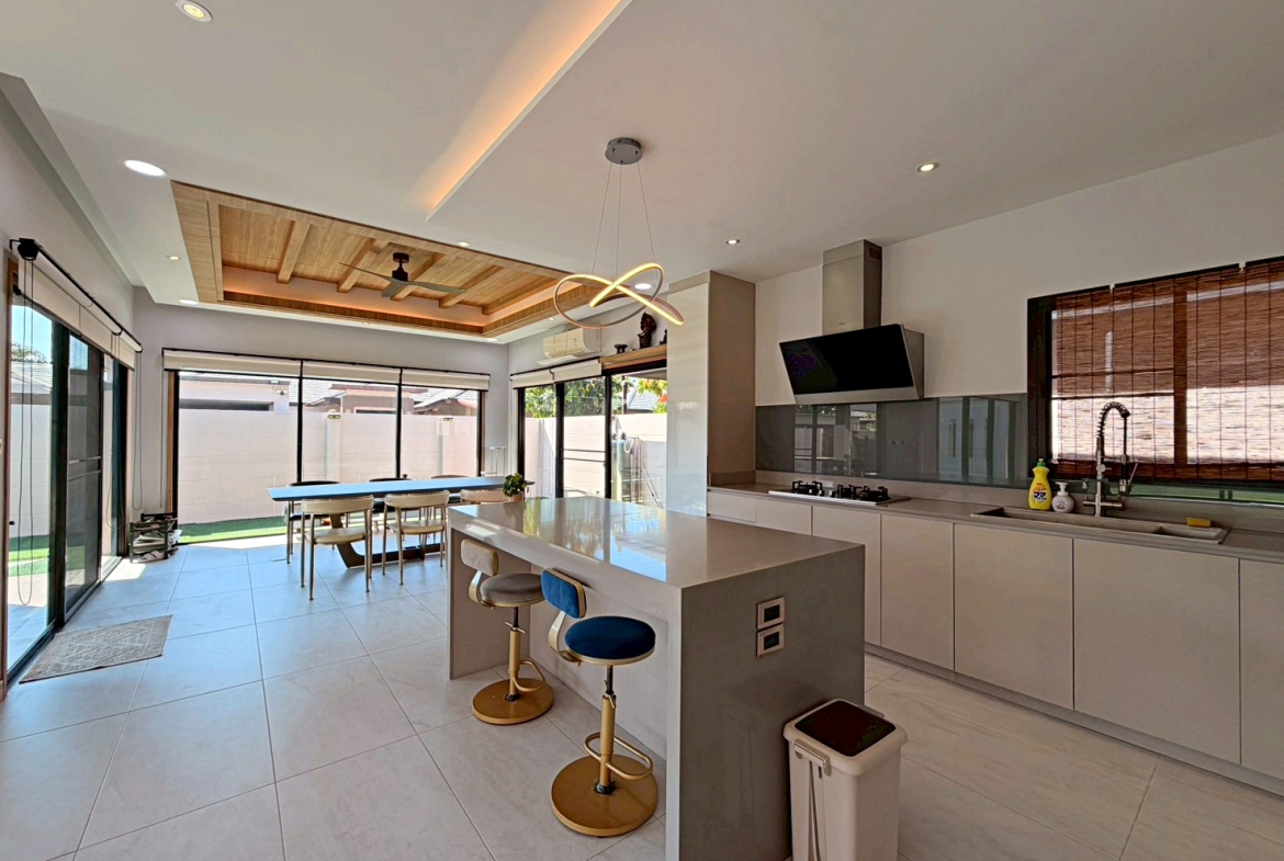’Baan Pattaya 5’ enjoys a unique location and design and the developer committed to offer the quality of living amidst nature with a relaxing atmosphere. The project is near Nongnuch garden, Floating Market, Jomtien Beach, Pattaya City, Floating Market, Phoenix Golf Club, and other major attractions. This house features 3 bedroom 3 bathroom situated offers 277 sqm of living space, land size 567 sq.m. It comes fully furnished with a European kitchen, dining area, large living room, private garden and covered parking. This house is available for sale in Company name ready to move in.