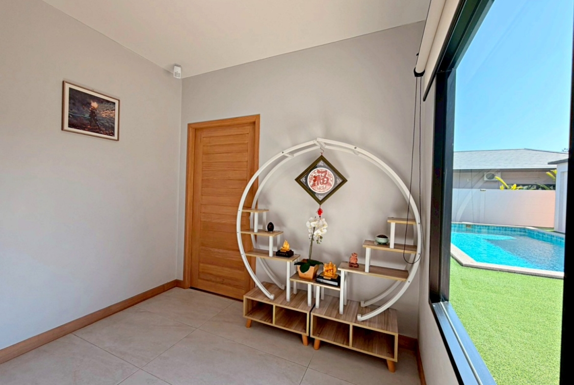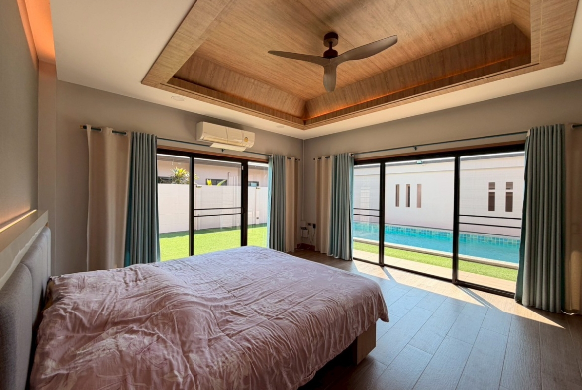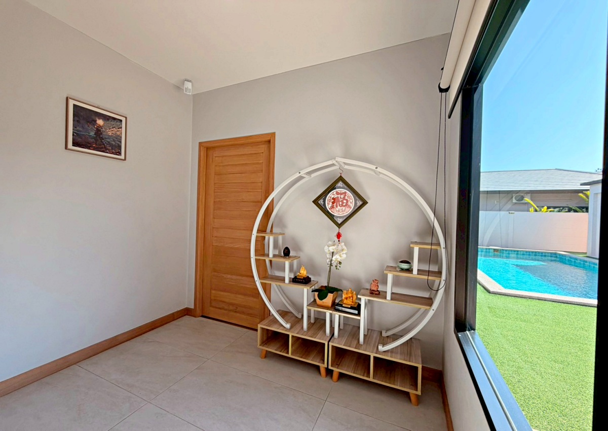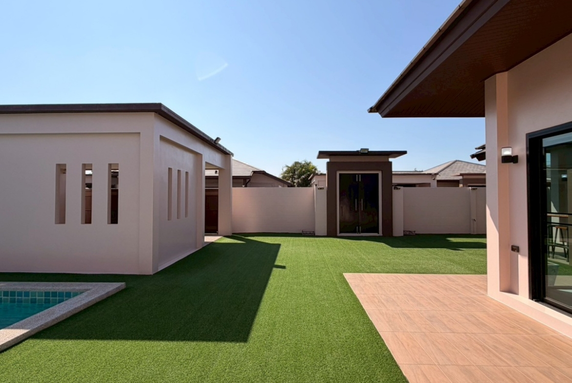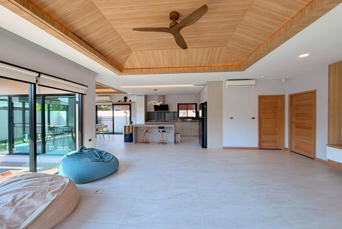 ’Baan Pattaya 5’ enjoys a unique location and design and the developer committed to offer the quality of living amidst nature with a relaxing atmosphere. The project is near Nongnuch garden, Floating Market, Jomtien Beach, Pattaya City, Floating Market, Phoenix Golf Club, and other major attractions. This house features 3 bedroom 3 bathroom situated offers 277 sqm of living space, land size 567 sq.m. It comes fully furnished with a European kitchen, dining area, large living room, private garden and covered parking. This house is available for sale in Company name ready to move in.