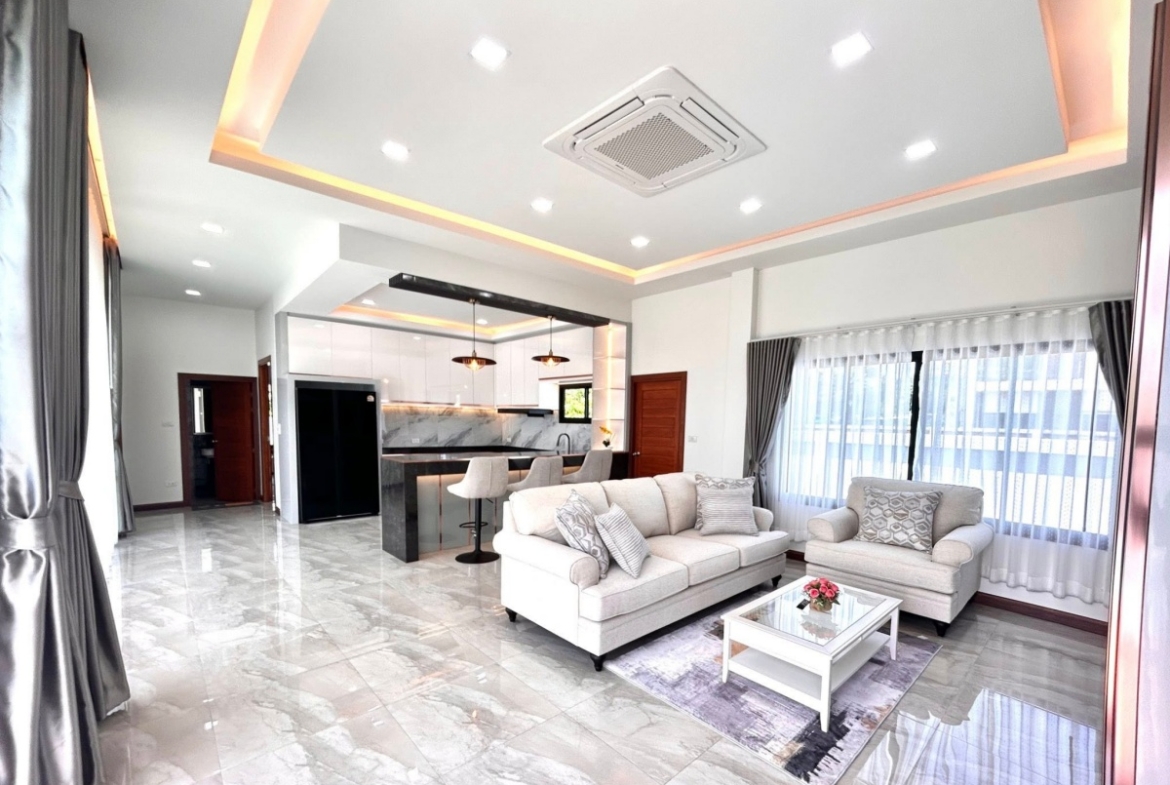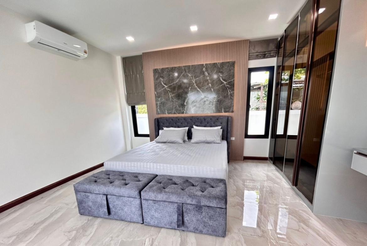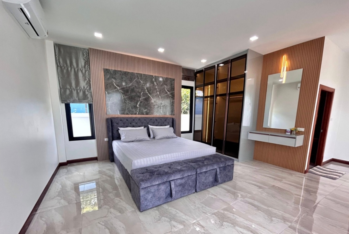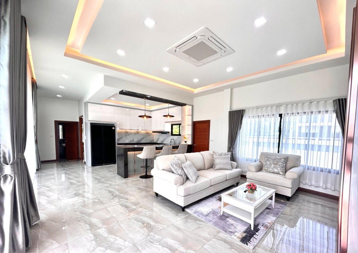 The private pool villa house for sale is a beautiful in Bang Sare, Sathahip, well-maintained property located in a quiet residential neighborhood. The house features a spacious living room, a modern kitchen with updated appliances, 3 bedrooms, and 4 bathrooms. The backyard is fenced in and perfect for outdoor entertaining. Additionally, the house has a two-car garage and ample storage space. Don’t miss out on this opportunity to own your dream home!