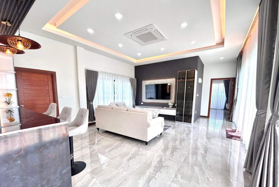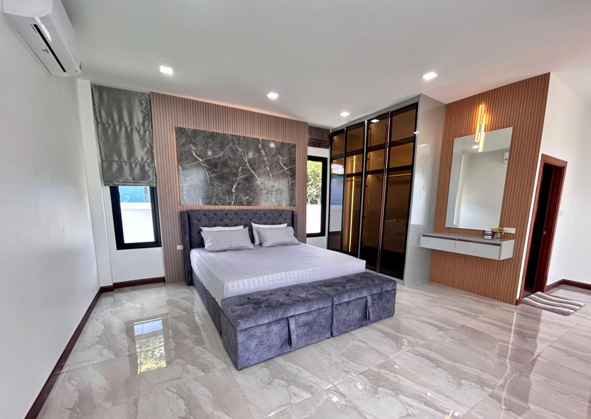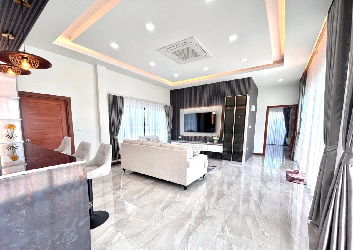 The private pool villa house for sale is a beautiful in Bang Sare, Sathahip, well-maintained property located in a quiet residential neighborhood. The house features a spacious living room, a modern kitchen with updated appliances, 3 bedrooms, and 4 bathrooms. The backyard is fenced in and perfect for outdoor entertaining. Additionally, the house has a two-car garage and ample storage space. Don’t miss out on this opportunity to own your dream home!