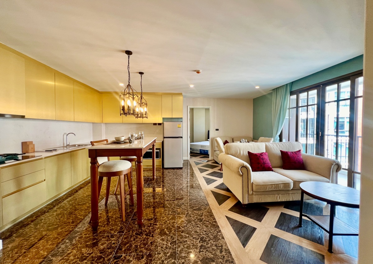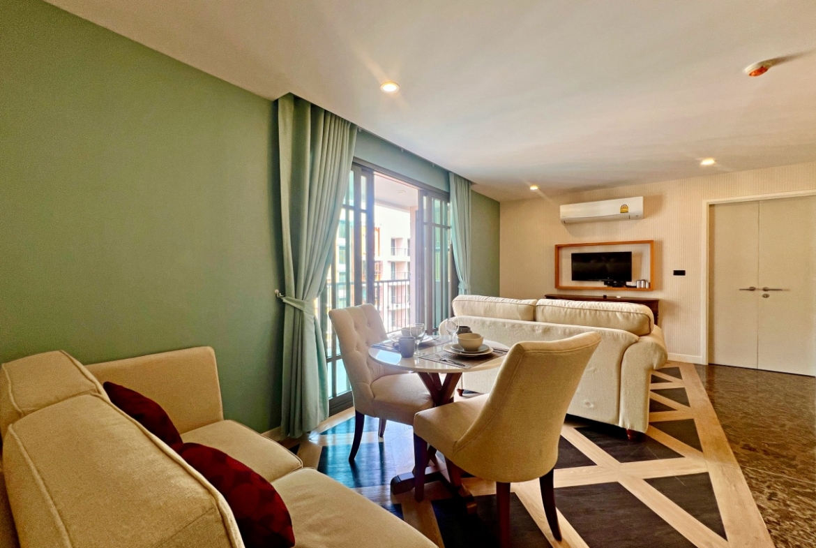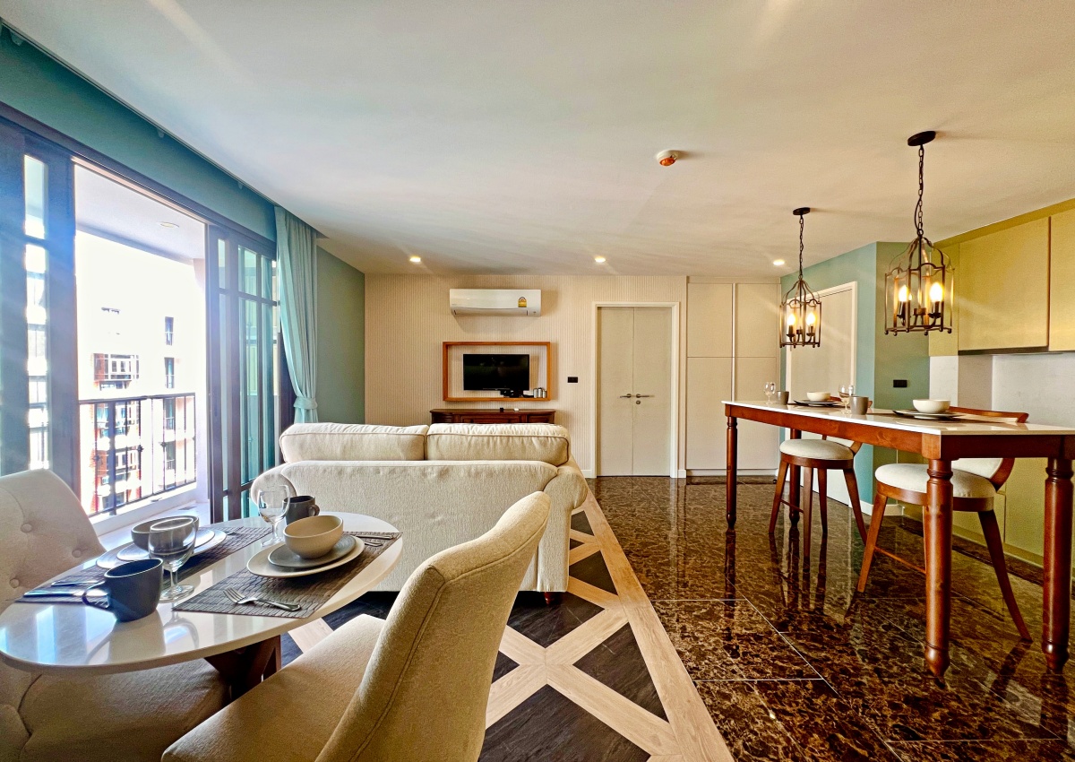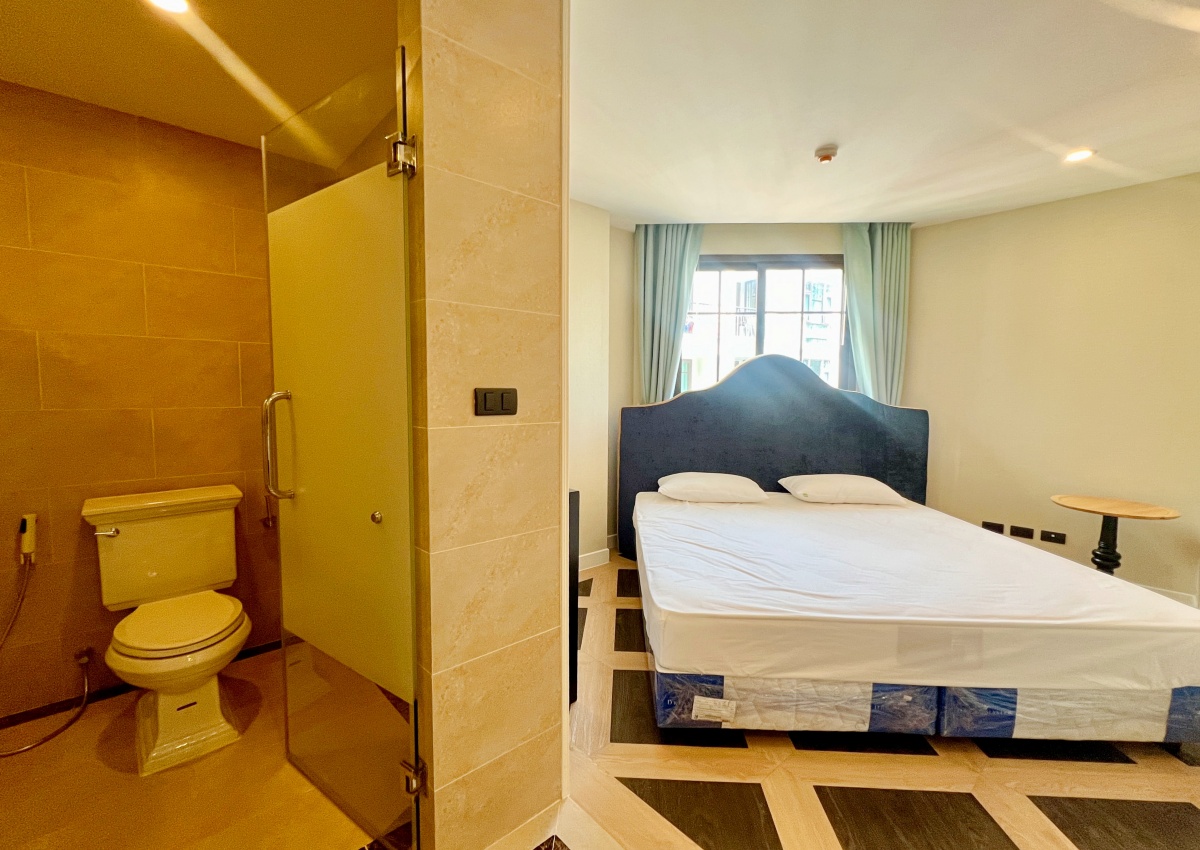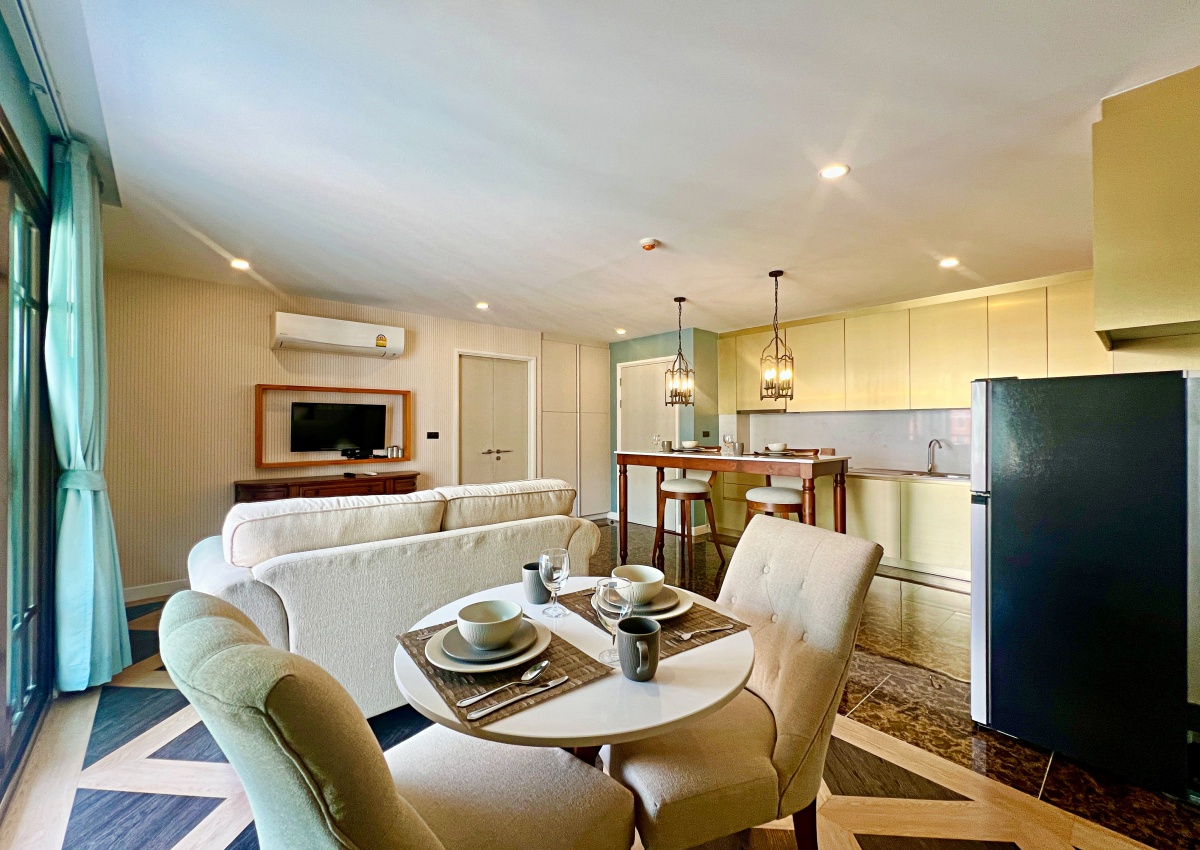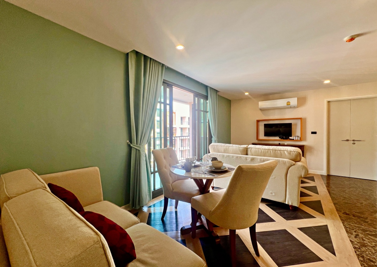 Espana Condo Resort Pattaya is located on Jomtien Second Road, A 14-minute walk from Jomtien Beach and restaurants, easy access to Sukhumvit Road. The facilities included a lagoon swimming pool, fitness, parking, and 24-hour security. This unit features 2 bedrooms and 2 bathrooms, located on the 7th floor of Building C, offering 72 square meters of living space. It comes fully furnished with a large European kitchen, dining and living area, and a balcony with a pool view. This unit is for rent and is ready to move in!
