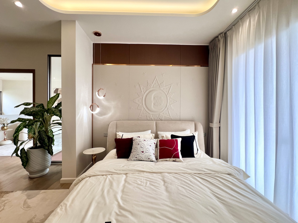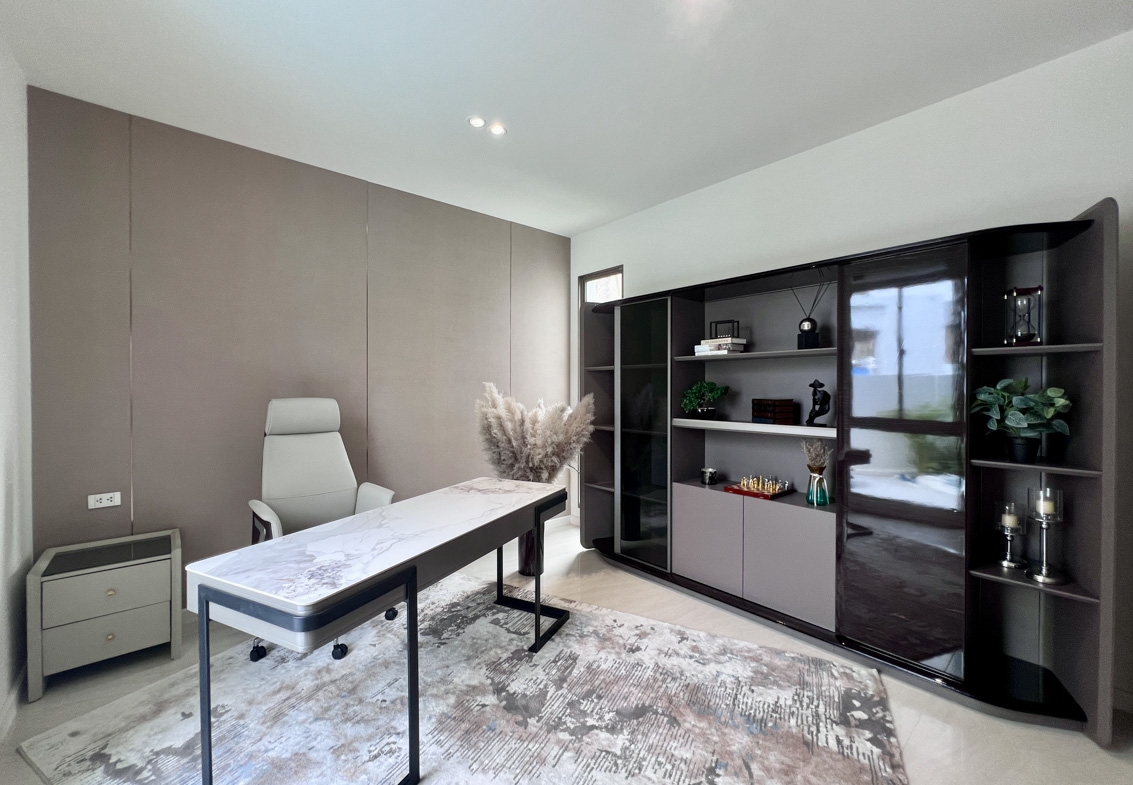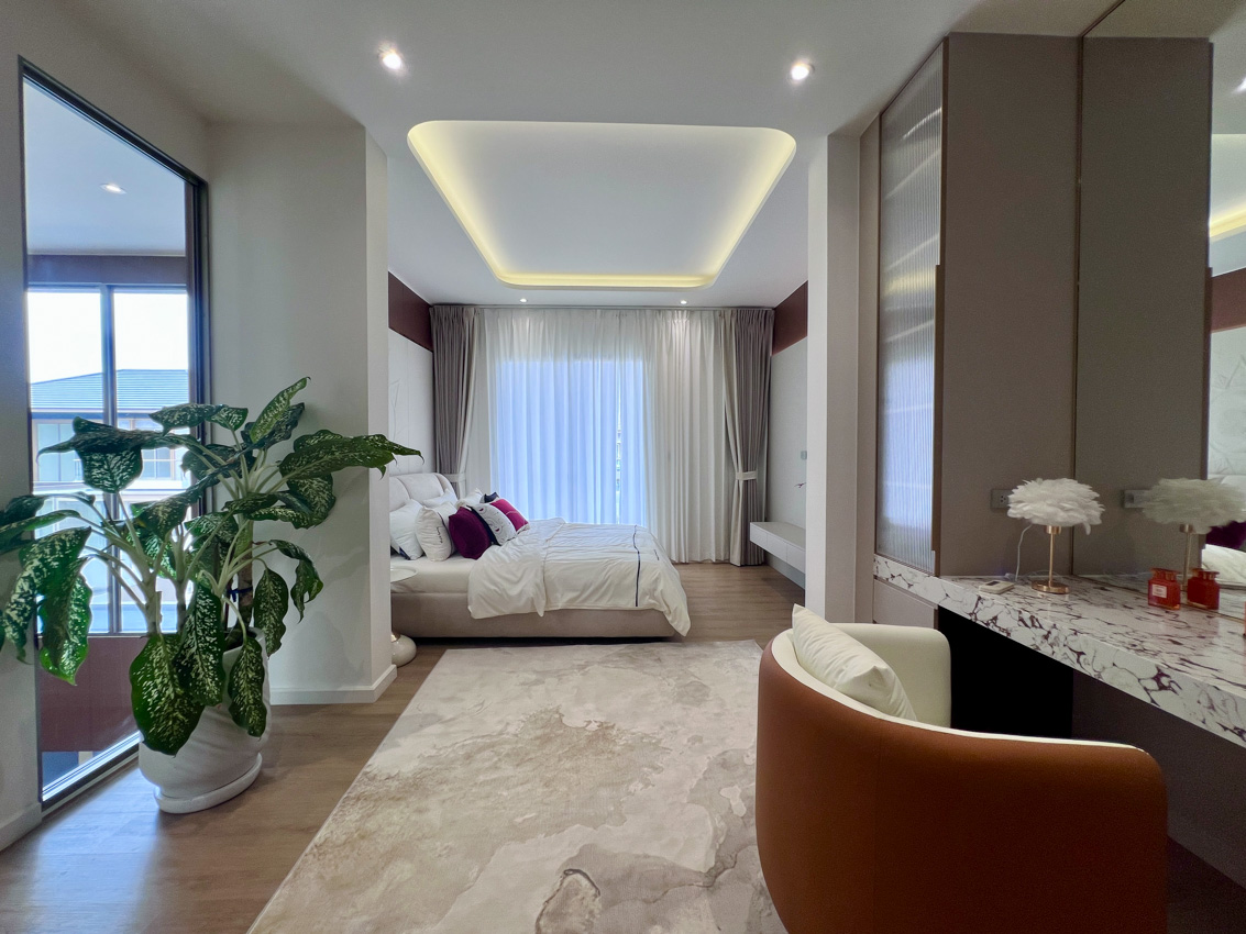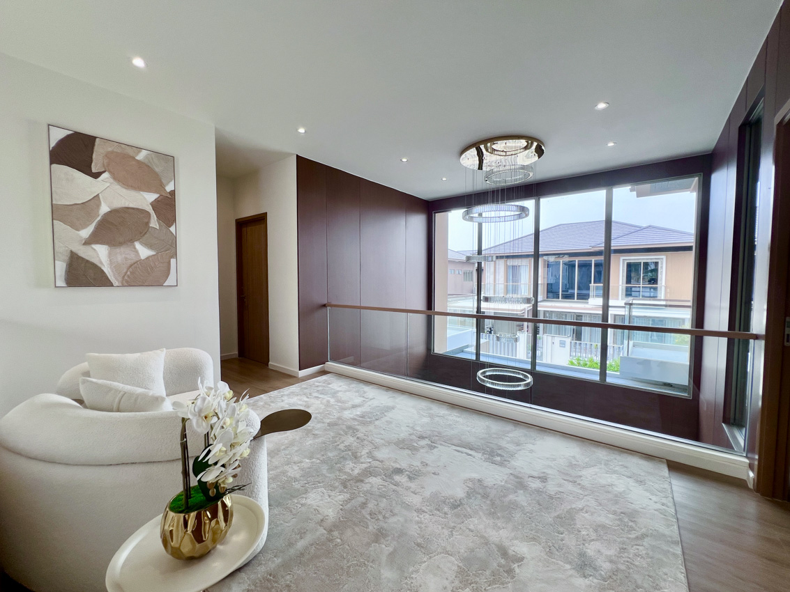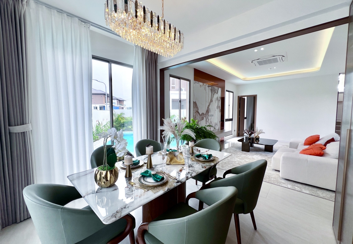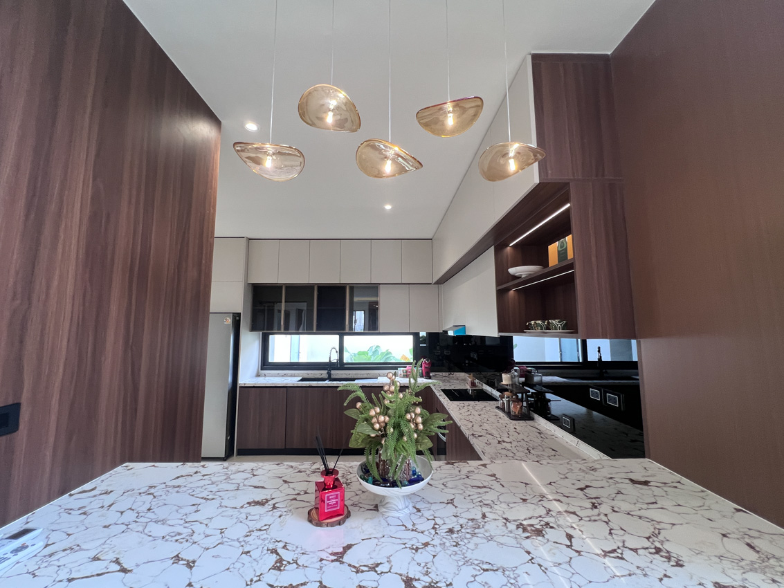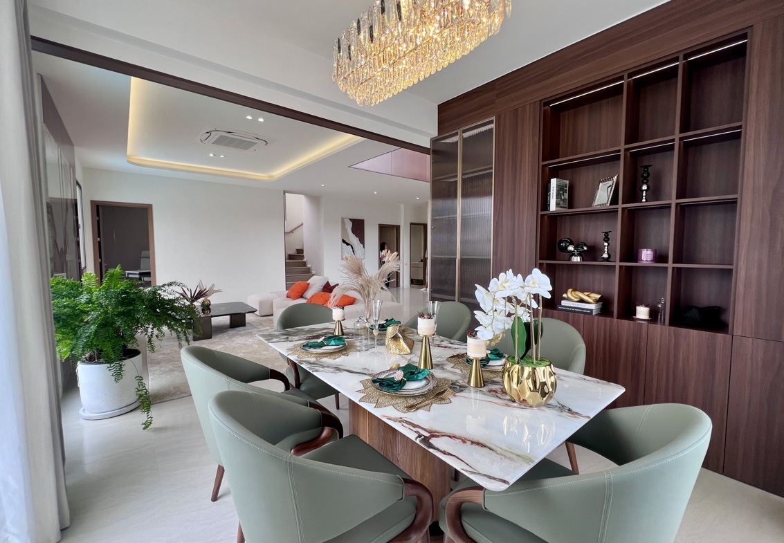 The most spacious house, uniquely designed to serve every functional need of all generations in a double high-volume space with a high ceiling. Experience the freedom in living space with your private bathrooms in all four bedrooms, one with a walk-in closet, an additional storage room, two parking spaces, a multi-purpose pavilion, and an option of a spacious swimming pool to elevate comfort for all family members.