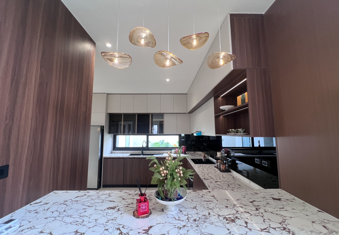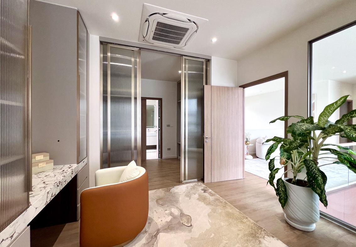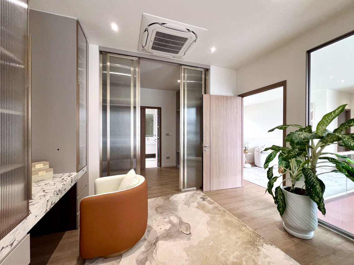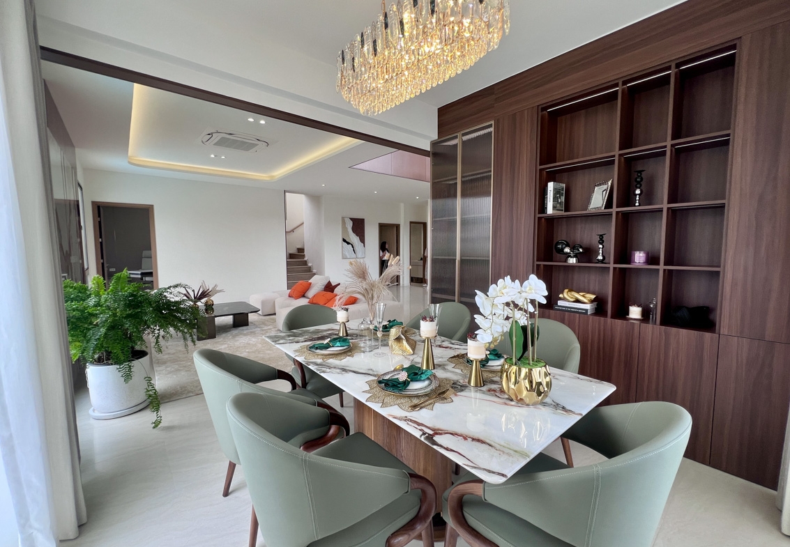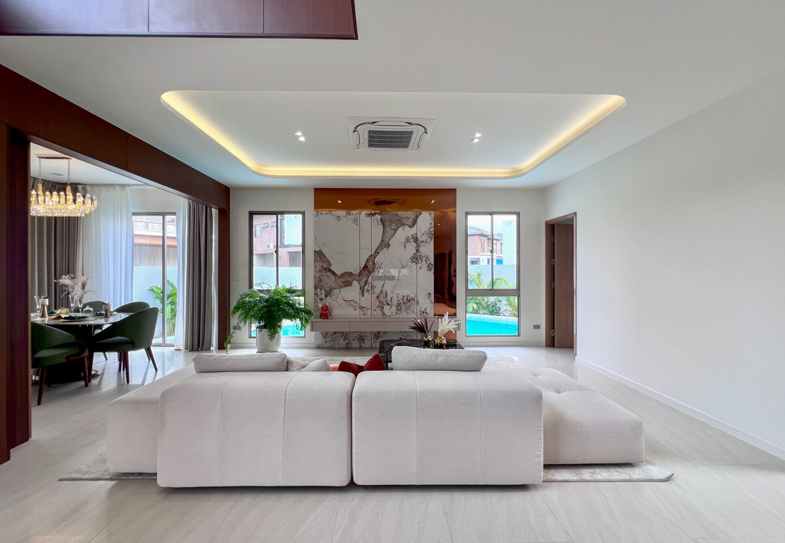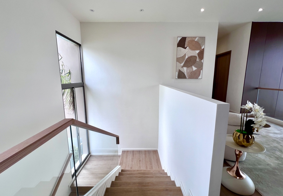 The most spacious house, uniquely designed to serve every functional need of all generations in a double high-volume space with a high ceiling. Experience the freedom in living space with your private bathrooms in all four bedrooms, one with a walk-in closet, an additional storage room, two parking spaces, a multi-purpose pavilion, and an option of a spacious swimming pool to elevate comfort for all family members.