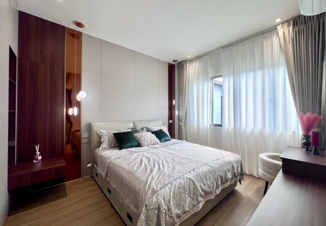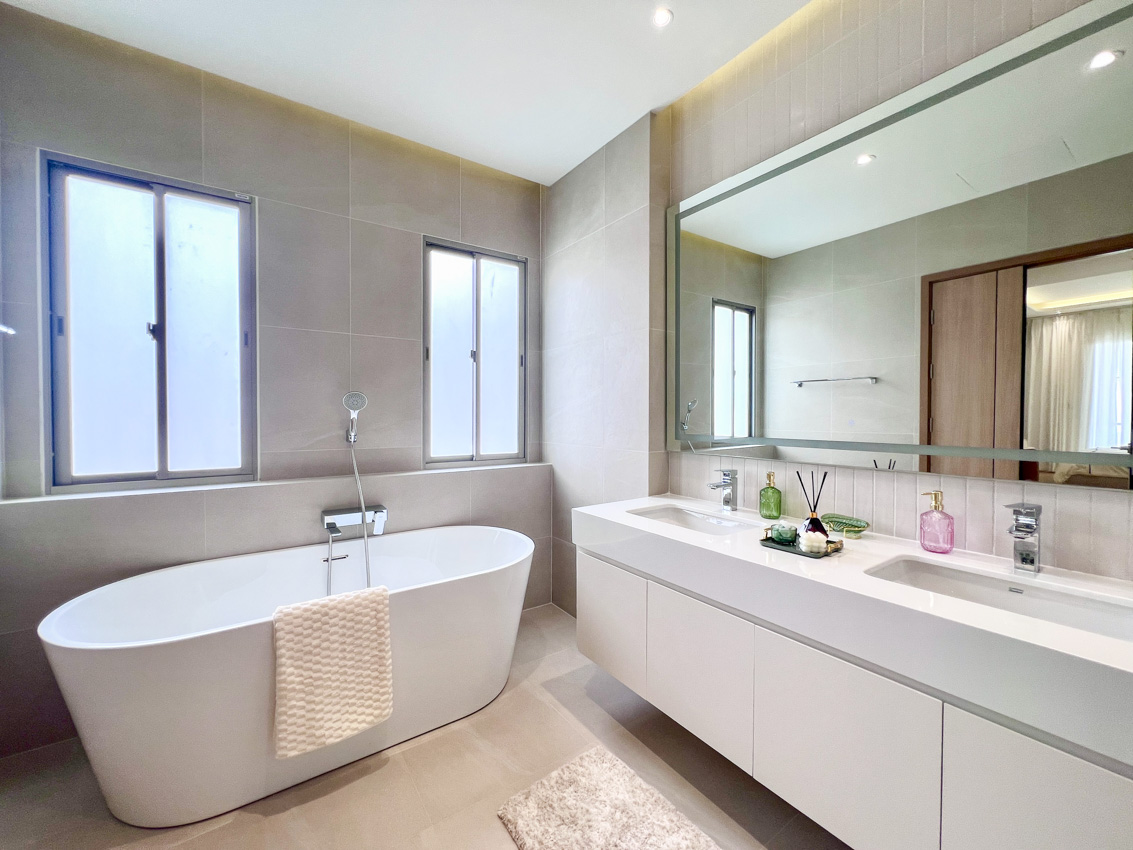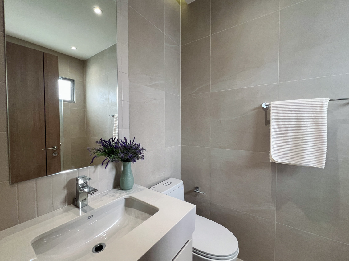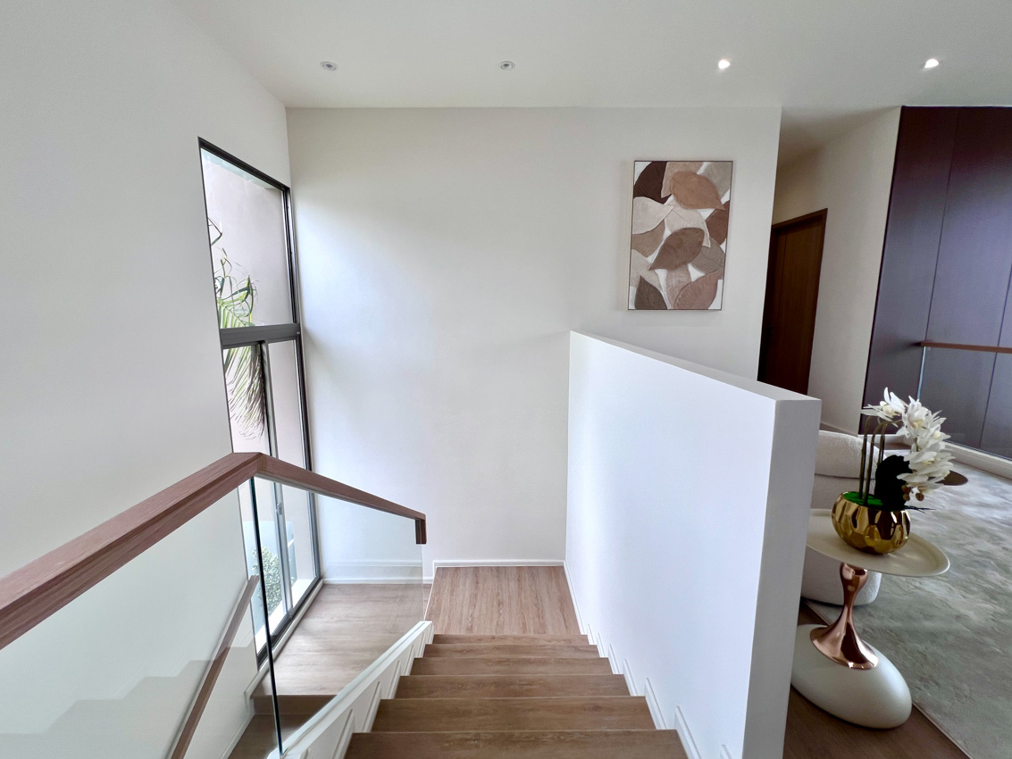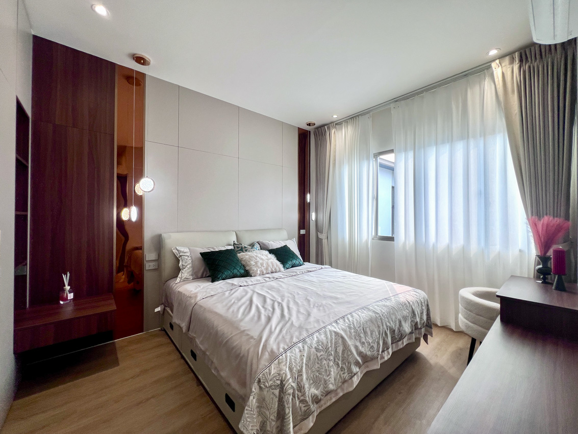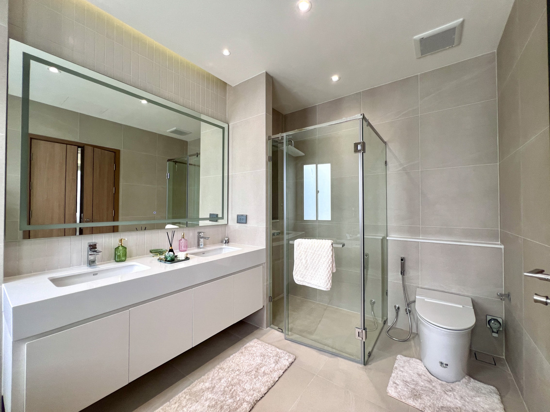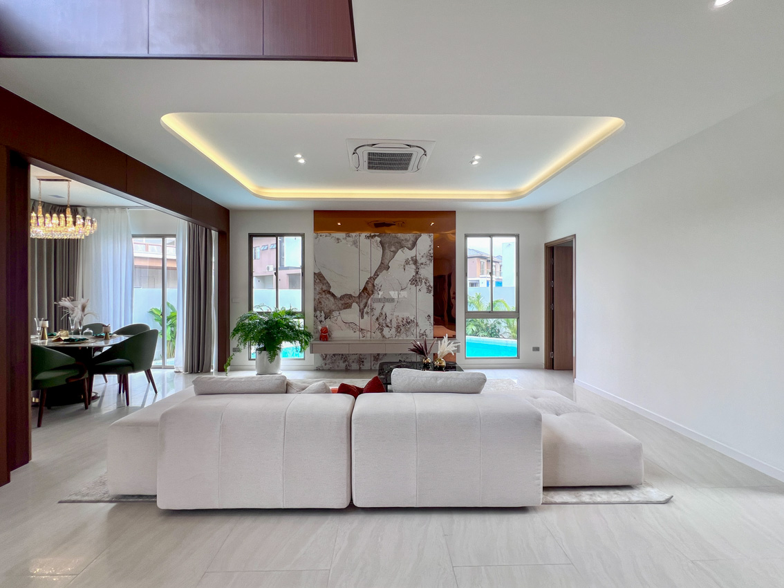 The most spacious house, uniquely designed to serve every functional need of all generations in a double high-volume space with a high ceiling. Experience the freedom in living space with your private bathrooms in all four bedrooms, one with a walk-in closet, an additional storage room, two parking spaces, a multi-purpose pavilion, and an option of a spacious swimming pool to elevate comfort for all family members.