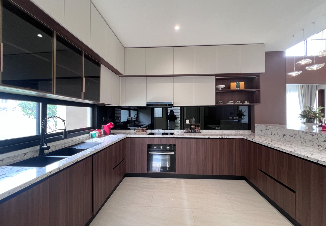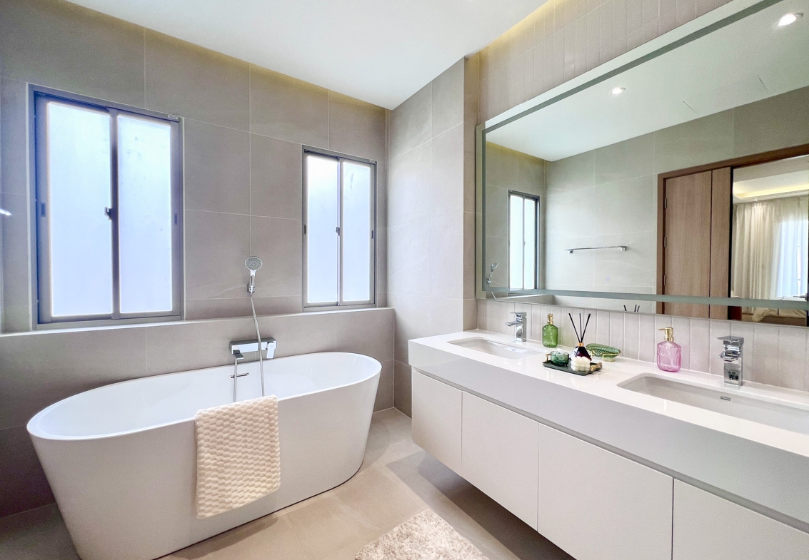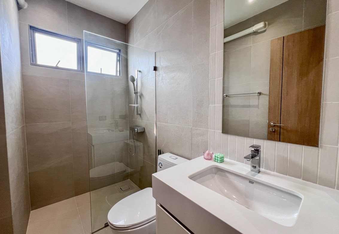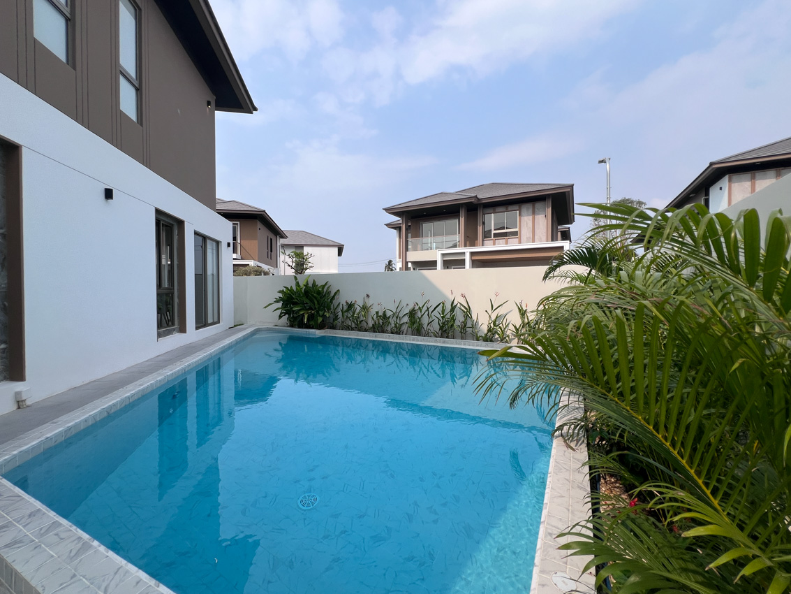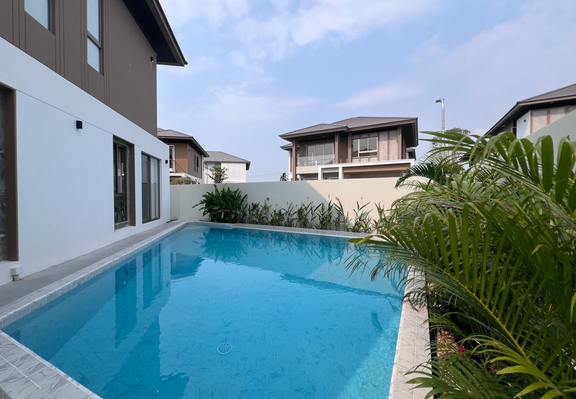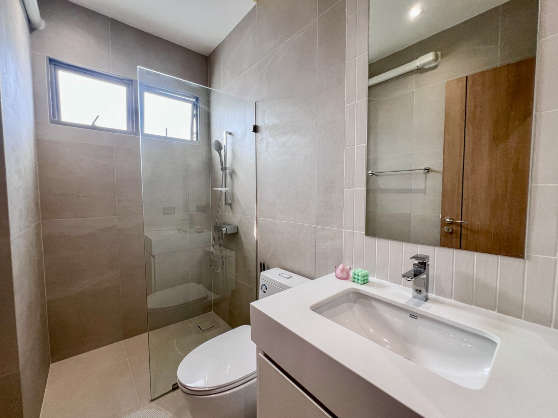 The most spacious house, uniquely designed to serve every functional need of all generations in a double high-volume space with a high ceiling. Experience the freedom in living space with your private bathrooms in all four bedrooms, one with a walk-in closet, an additional storage room, two parking spaces, a multi-purpose pavilion, and an option of a spacious swimming pool to elevate comfort for all family members.