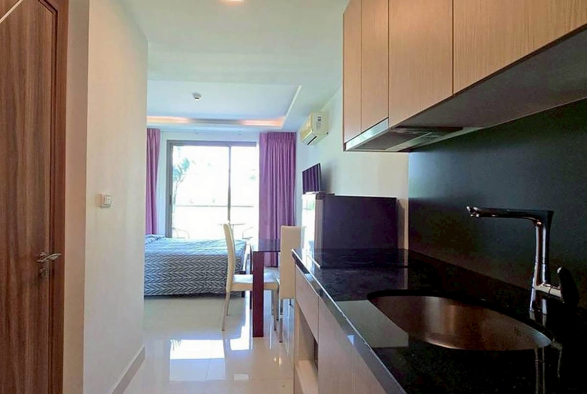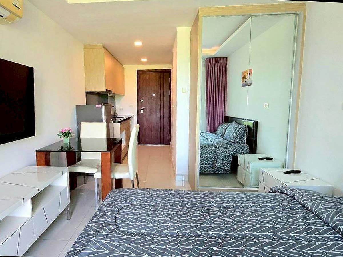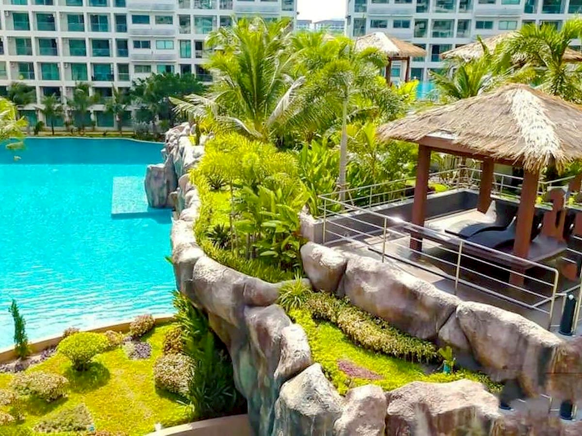 Laguna Beach Resort 3 – The Maldives is a condo project developed by Crystal Peak Holdings, Laguna Beach Resort 3 – The Maldives construction was completed in 2017 The Project has the following facilities: Swimming pool, Gym, Security, Car park, Garden, Sauna, Concierge and Hot Tub. This studio room, 1-bathroom is situated on the 2nd floor of building E unit offers 23 sq. m. of living space. It comes with fully furnished with a modern European kitchen, dining area, living area, washing machine, and balcony with a pool view. This unit is available for sale and rent is ready to move in!