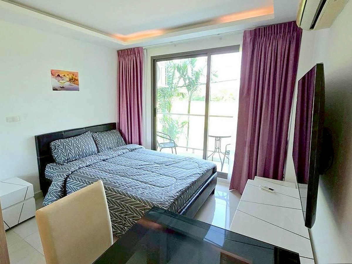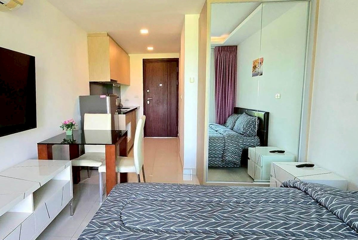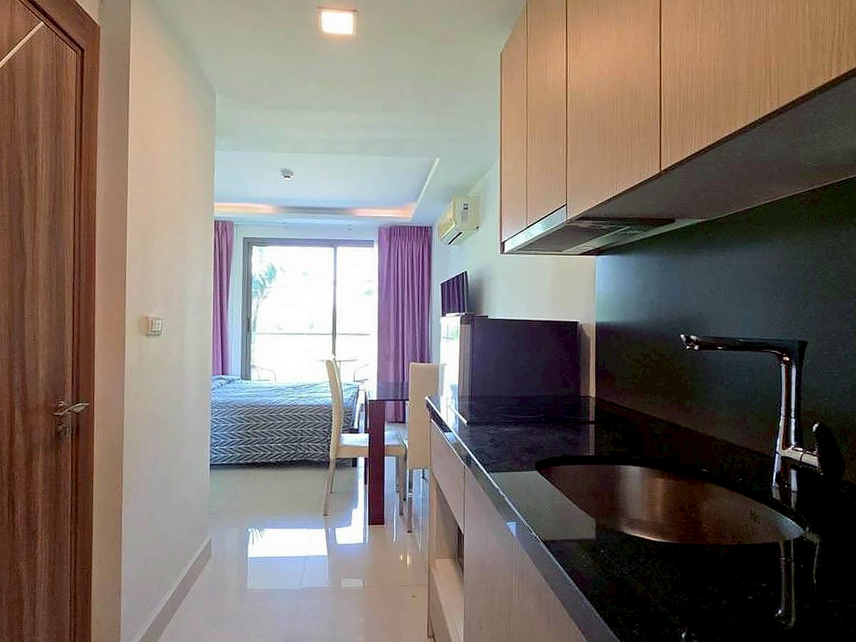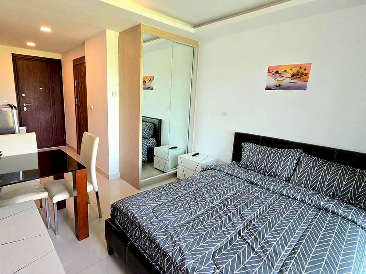Laguna Beach Resort 3 – The Maldives is a condo project developed by Crystal Peak Holdings, Laguna Beach Resort 3 – The Maldives construction was completed in 2017 The Project has the following facilities: Swimming pool, Gym, Security, Car park, Garden, Sauna, Concierge and Hot Tub. This studio room, 1-bathroom is situated on the 2nd floor of building E unit offers 23 sq. m. of living space. It comes with fully furnished with a modern European kitchen, dining area, living area, washing machine, and balcony with a pool view. This unit is available for sale and rent is ready to move in!
