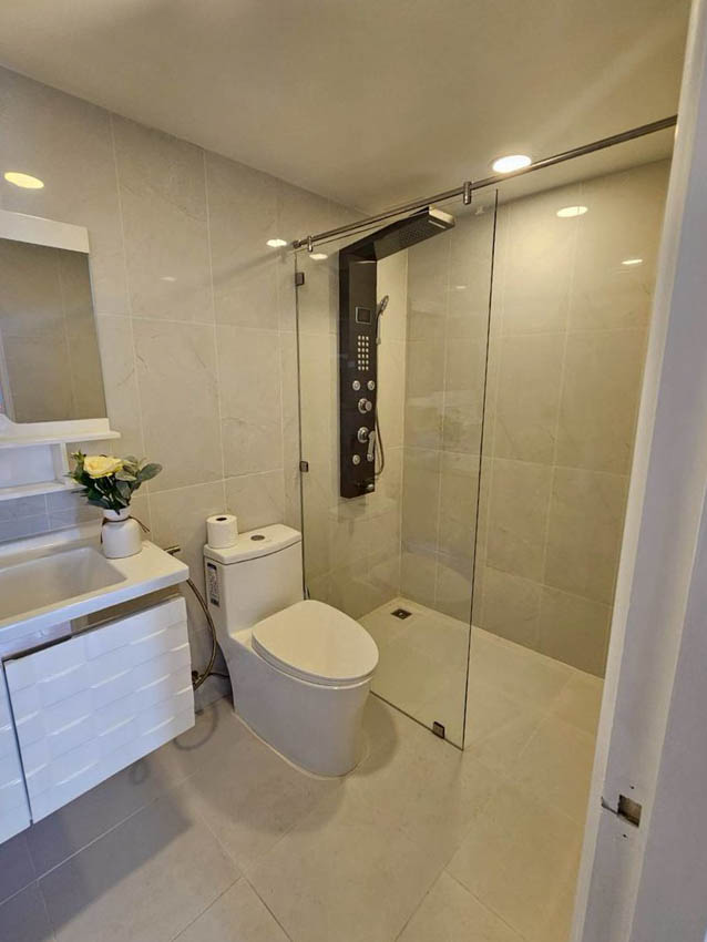 This 1-bedroom, 1-bathroom unit offers 42 sq. m. of living space. It comes with fully furnished with a modern European kitchen, dining area, living area, washing machine, and balcony with a pool view. This unit is available for rent and sale in a foreign name and is ready to move in!