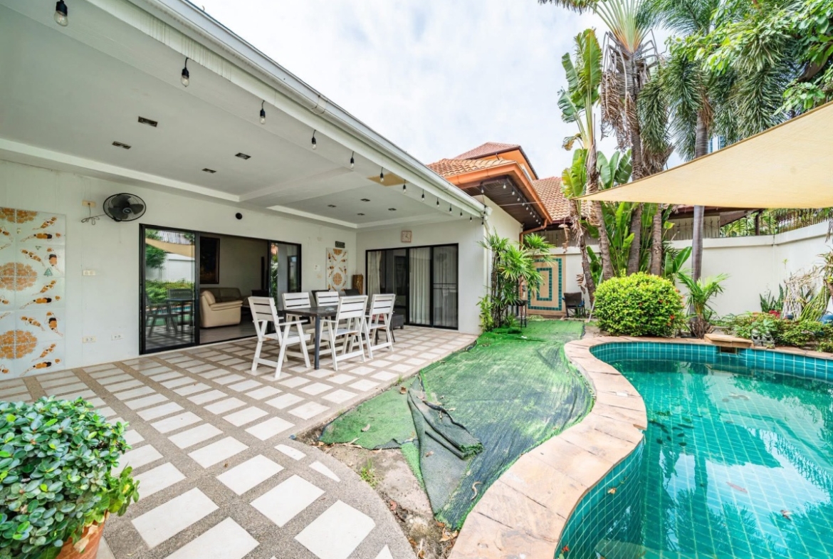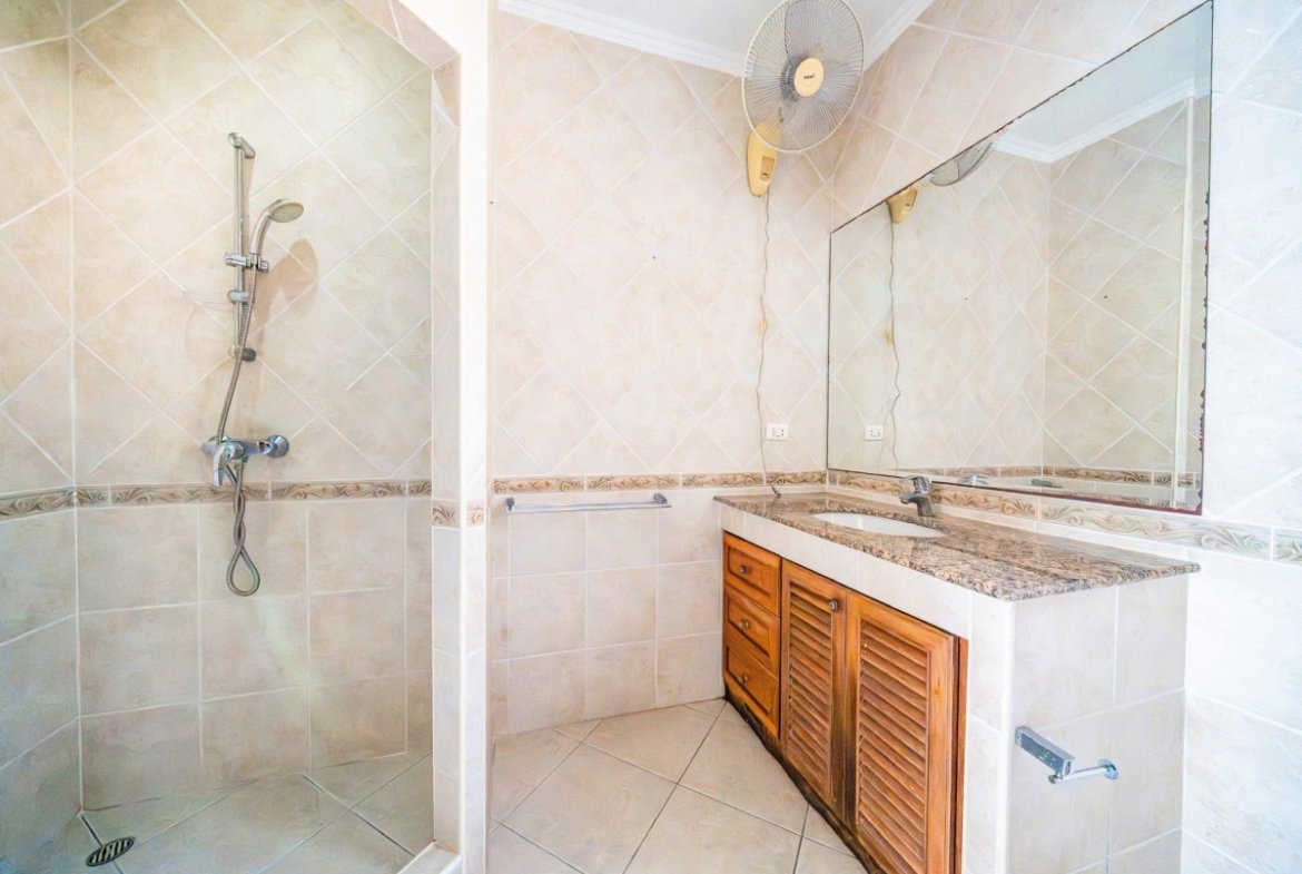 Majestic Residence Pratumnak, is located Kasetsin. The project consists of 70 villas. Private pool villa on the Pratunmak area, surrounded by conveniences such as entertainment venues, Thai restaurants, international restaurants, department stores, and direct beach access that allows easy access to the beach. Explore the popular tourist attractions such as the viewpoint of Pratumnak, Pattaya Beach, Walking Street, etc., and enjoy the tranquil nature for the best relaxation. The villa completes with excellent facilities such as a swimming pool, a garden and outdoor resting area, and a fully-equipped European kitchen. This property with an estimated living area of 200 sq.m 4 bedrooms and 2 bathrooms on a 341 sq.m. plot of land, with private garden and pool. It comes un-furnished. As you enter the house, you’ll be greeted by a welcoming and well-lit large living area. This beautiful house is available for sale in Thai name.