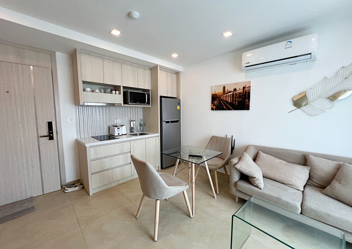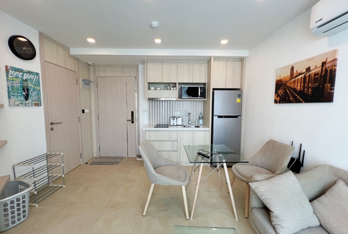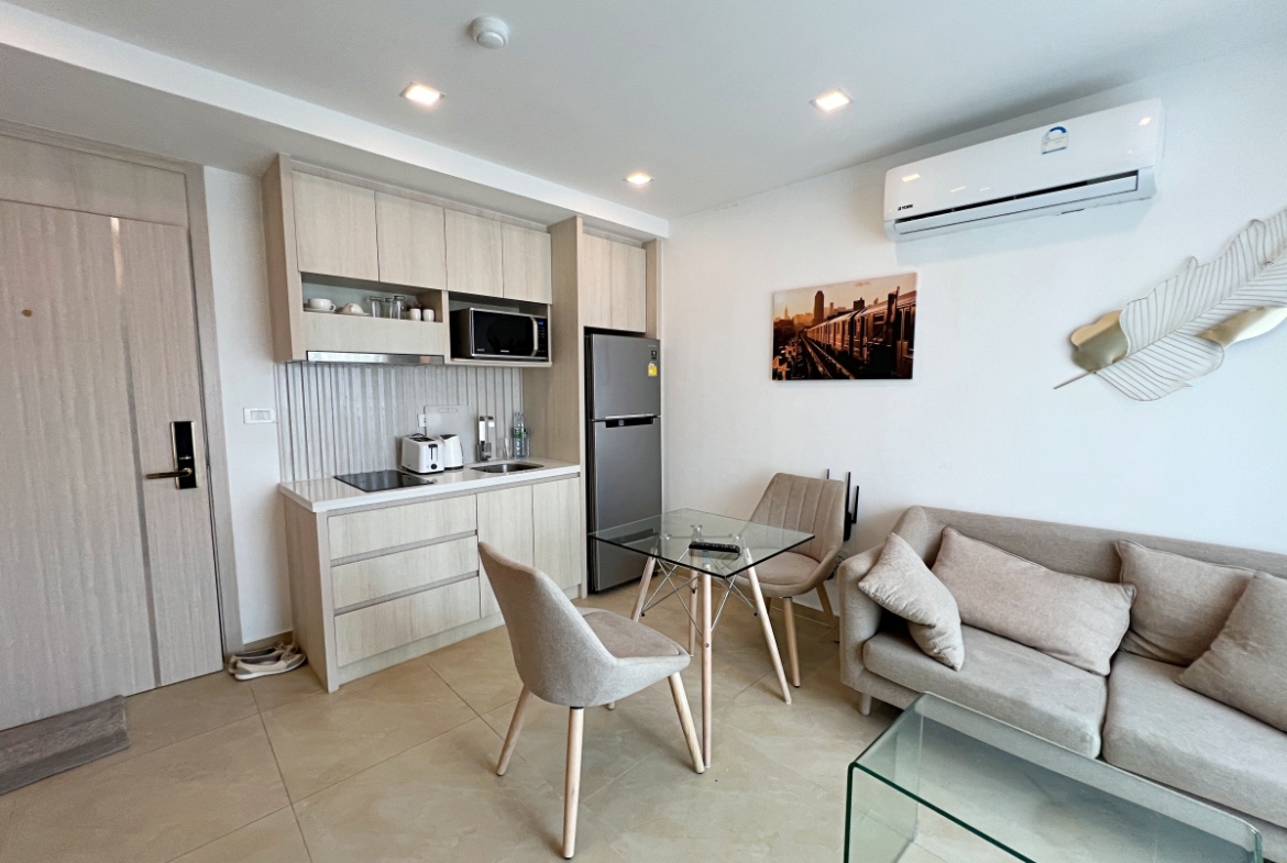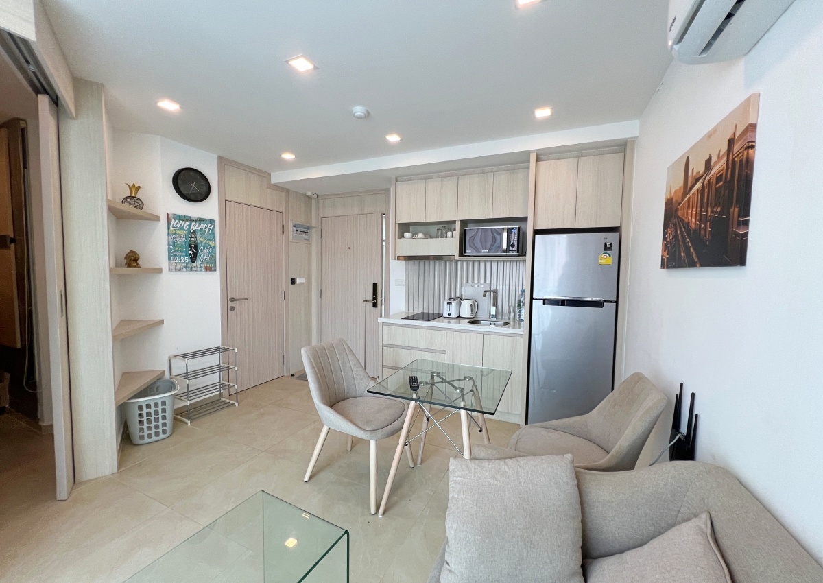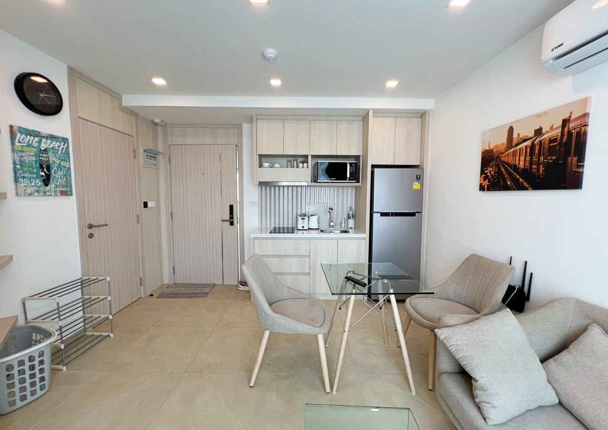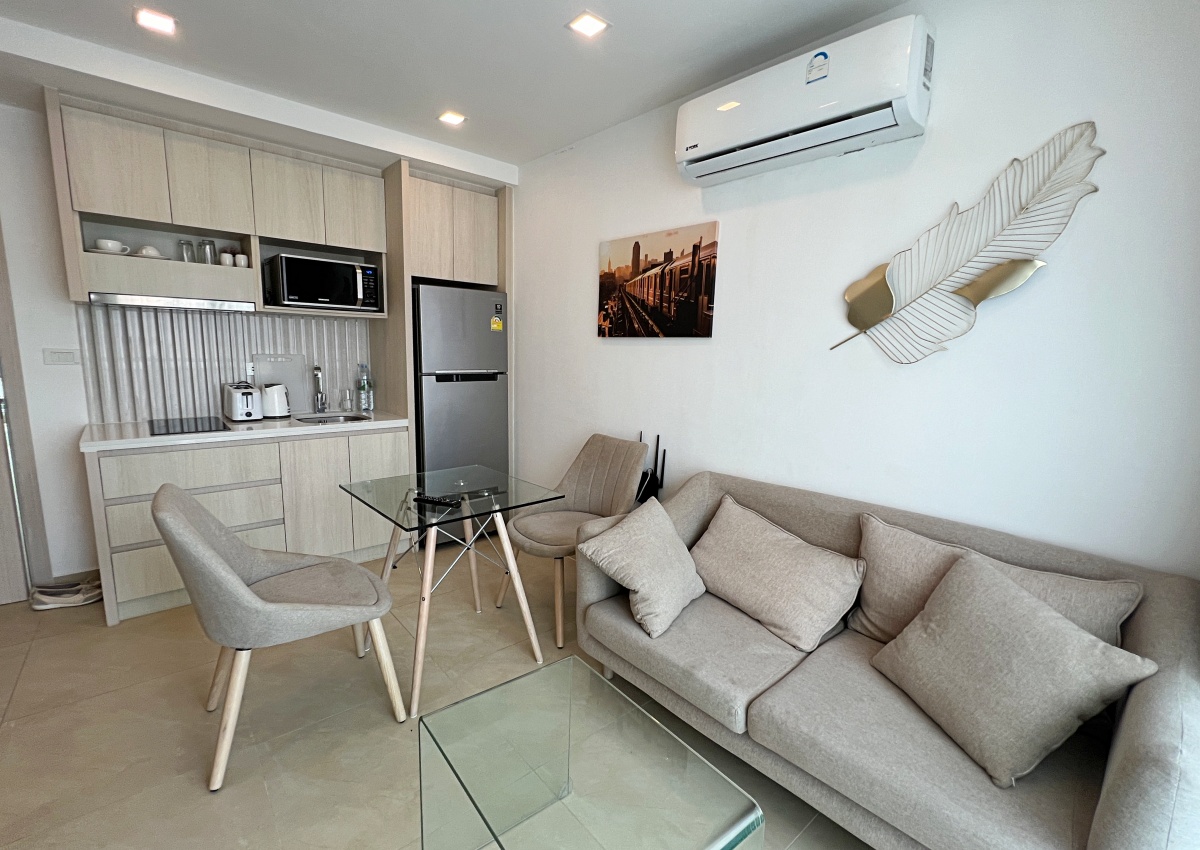 This 1 bedroom, 1 bathroom unit offers 27 sq m of living space. It comes fully furnished, a European kitchen, dining and living area. This unit is available for sale in a Thai company name and is ready to move in!