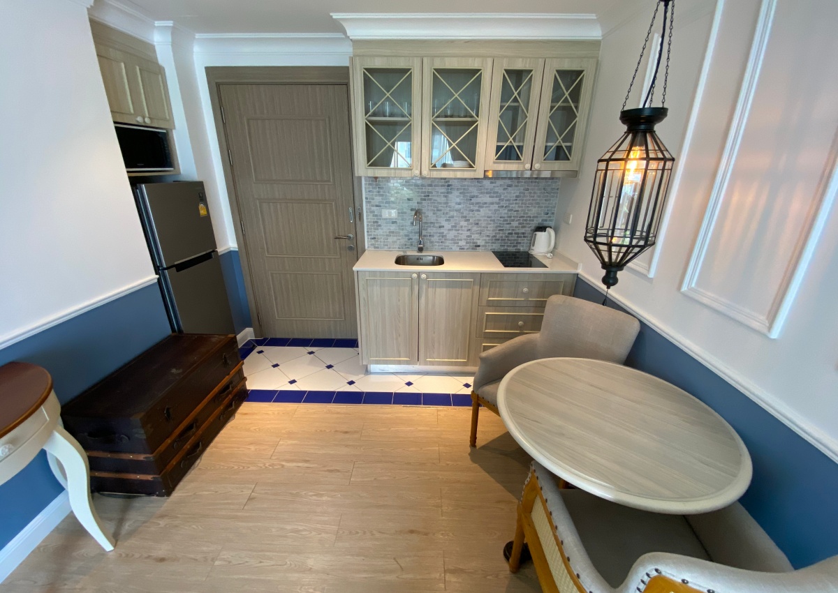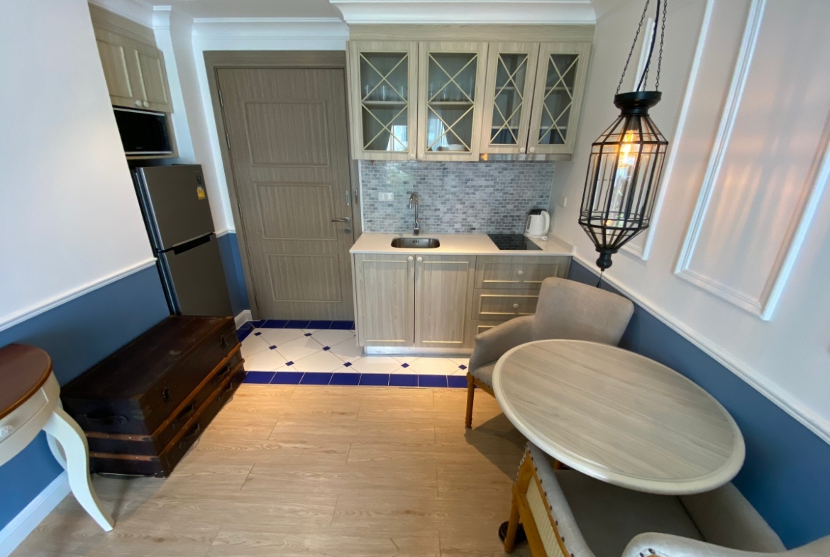Seven Seas Cote d’Azur is an 8-story low-rise condominium consisting of 7 buildings with 1,308 residential units, developed by Universal Group Thailand. It is located at Na Jom Tien 4, Nong Prue, Pattaya, Chon Buri. The project construction was completed in 2018. Seven Seas Cote d’Azur, a quality condominium project from Universal Group Thailand, allows you to explore and experience the luxury living in a Mediterranean-style condominium as well as provides a perfect living atmosphere in a prime location that is a few minutes proximate to Central Festival Pattaya Beach. It is also surrounded by several tourist attractions and amenities in Pattaya, including Jomtien Beach, Pattaya Floating Market, Underwater World Pattaya, and Pattaya Memorial Hospital. Furthermore, it provides a wide range of amenities, including a lobby, swimming pool, gym, communal garden area, and a 24-hour security system, to accommodate residents in all aspects. This 1-bedroom unit is situated on the 4 floor with sea view, offering 32.29 sqm of living space. It comes fully furnished with a modern kitchen, dining area, and a nice living area. This unit is for sale foreign.