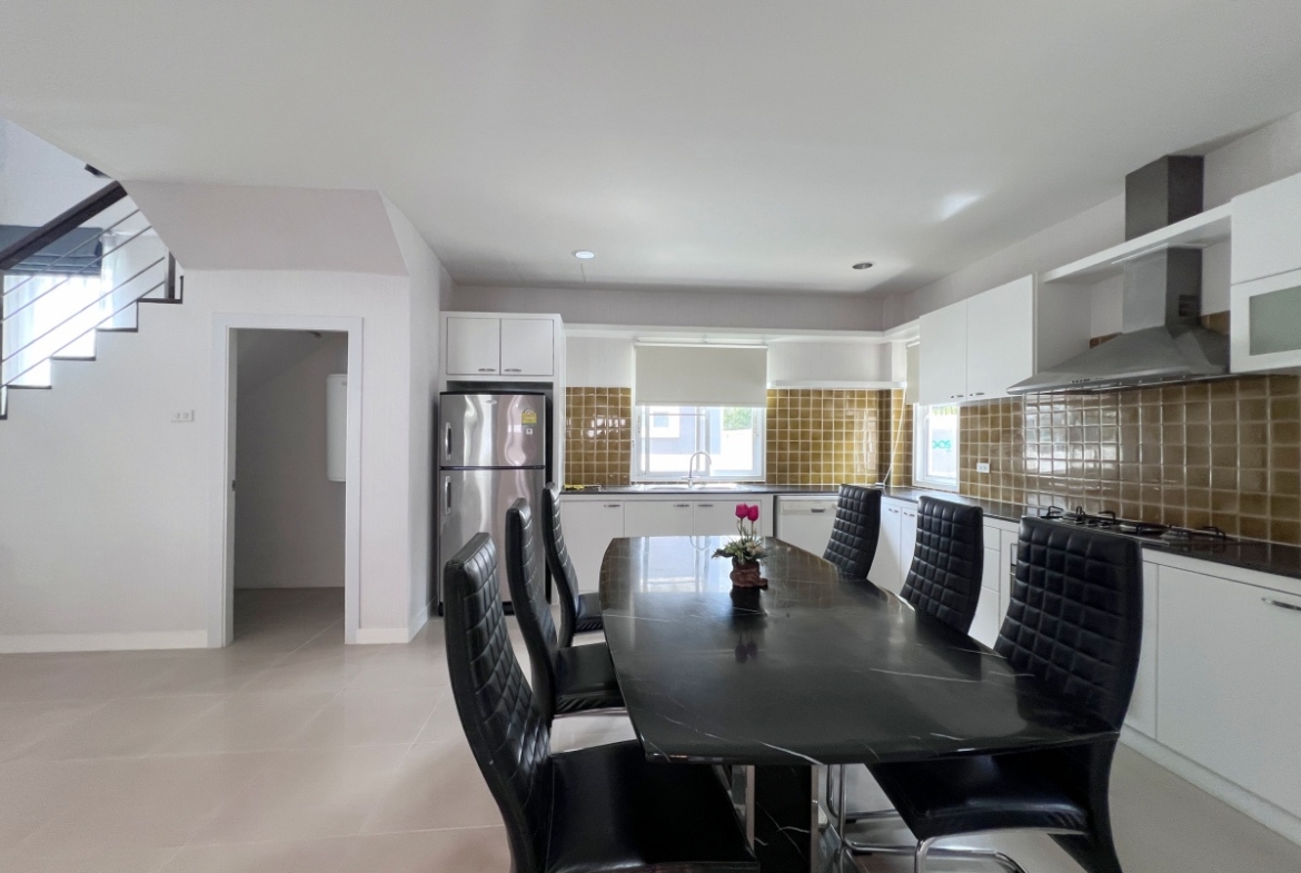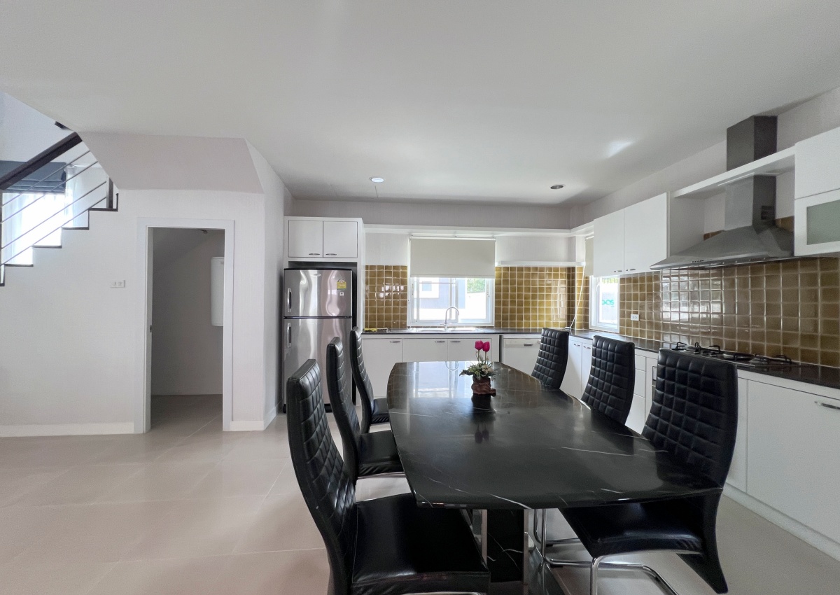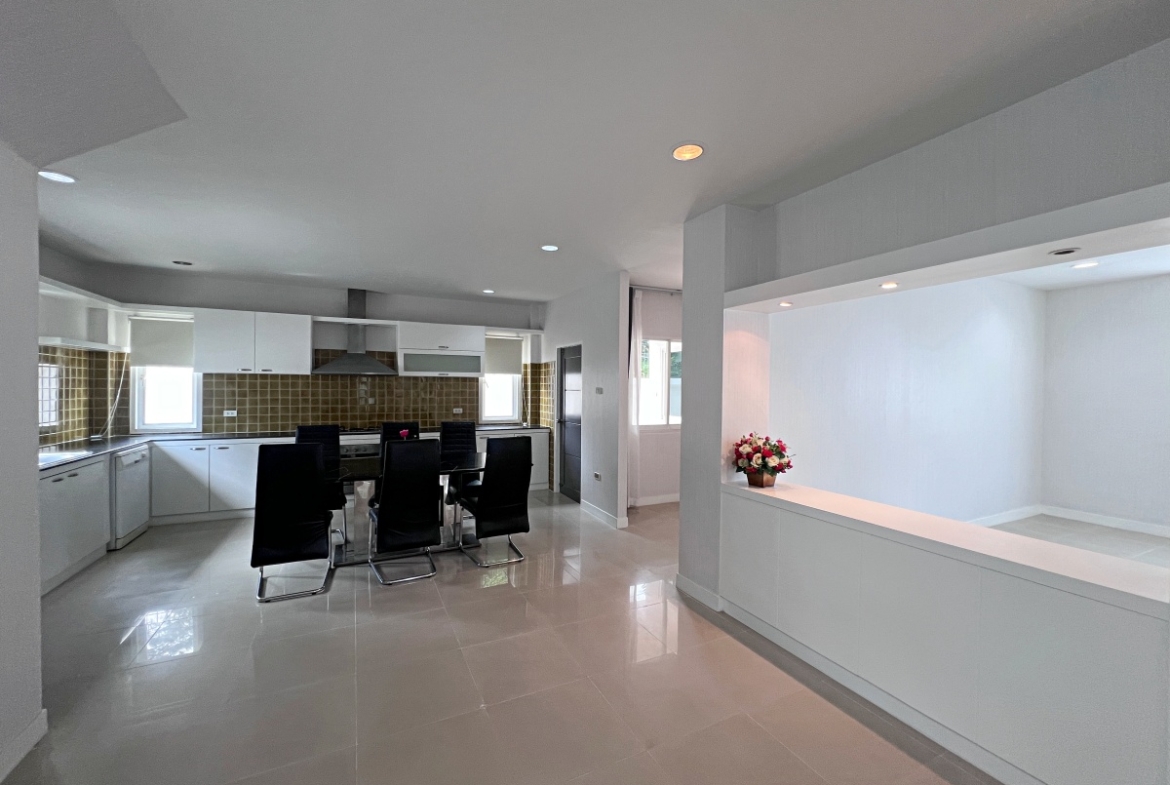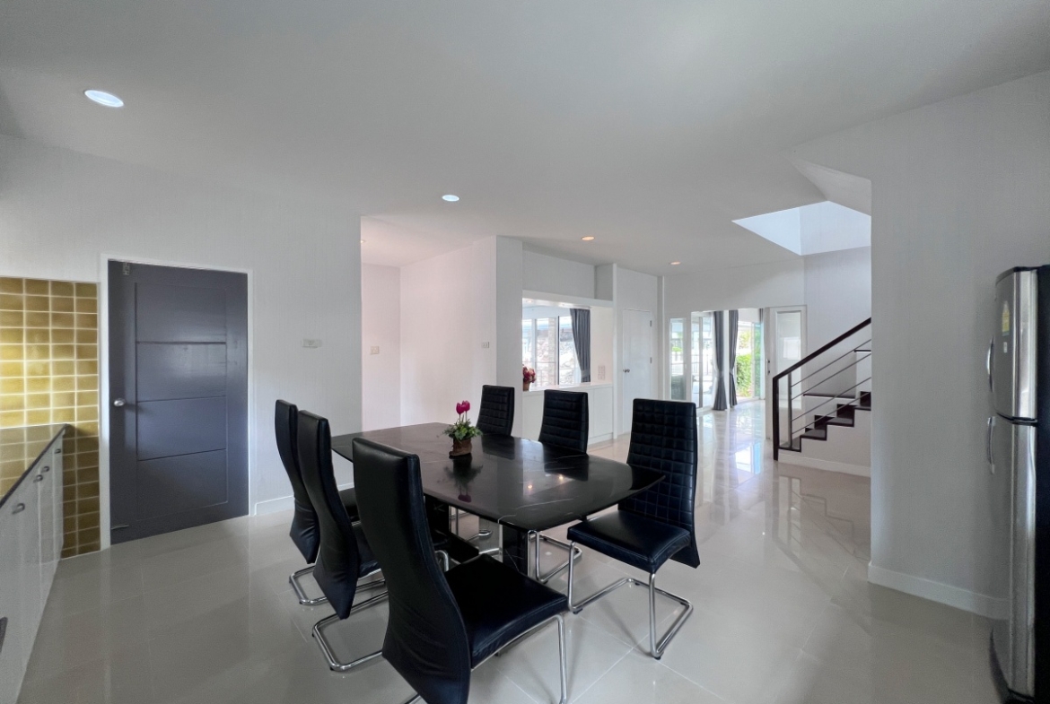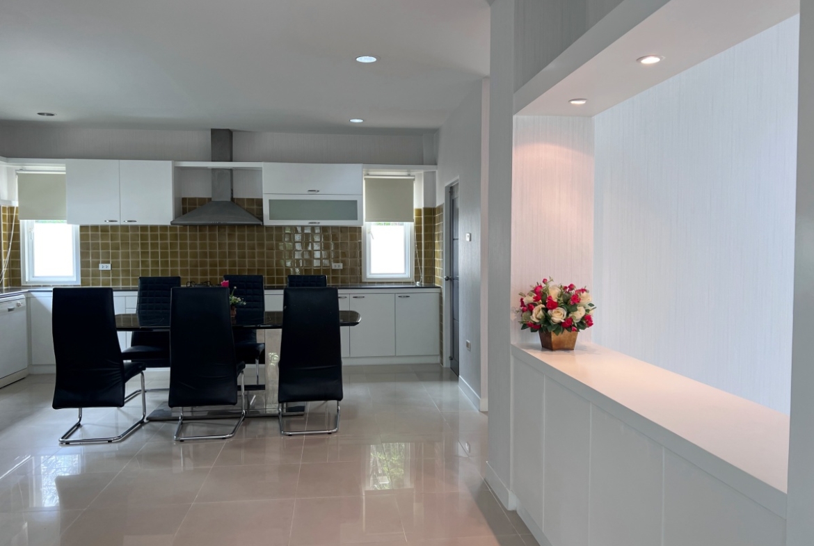 This property with an estimated living area 0f 250 sq.m 3 bedrooms and 3 bathrooms, maid room sit on a 144 sq.wha. plot of land, with private pool providing ample space for you and your family. It comes with a European kitchen, dining and living area and parking. As you enter the house, you’ll be greeted by a welcoming and well-lit living area. This beautiful house is available for sale in Thai name.