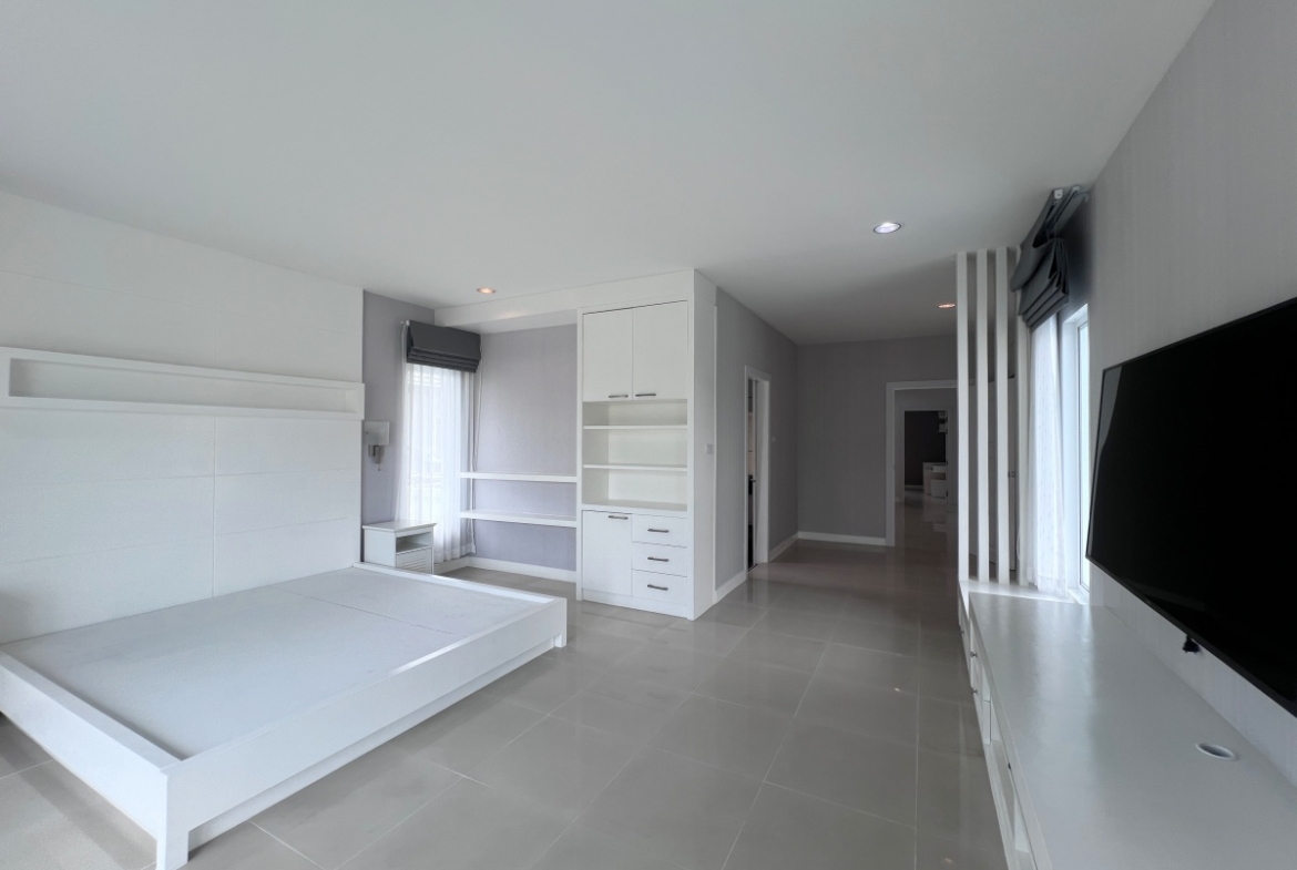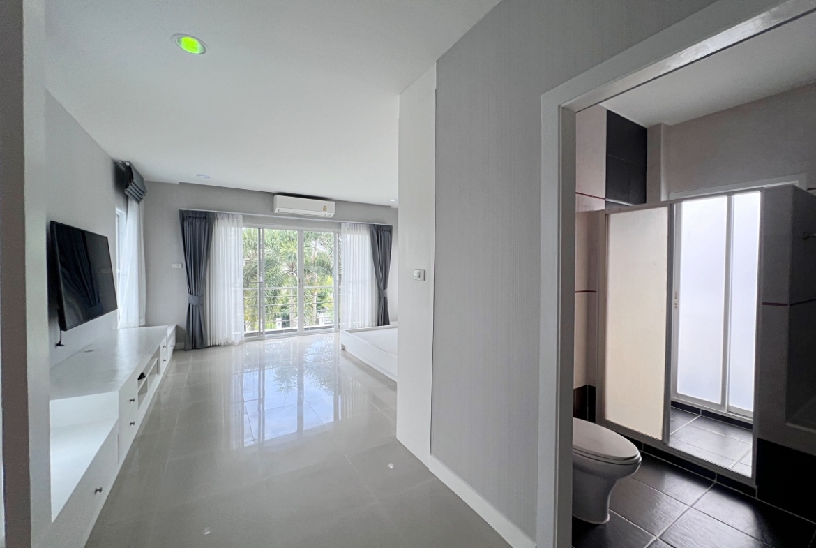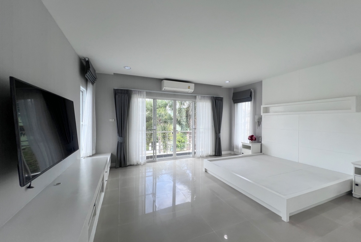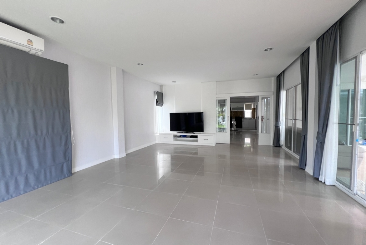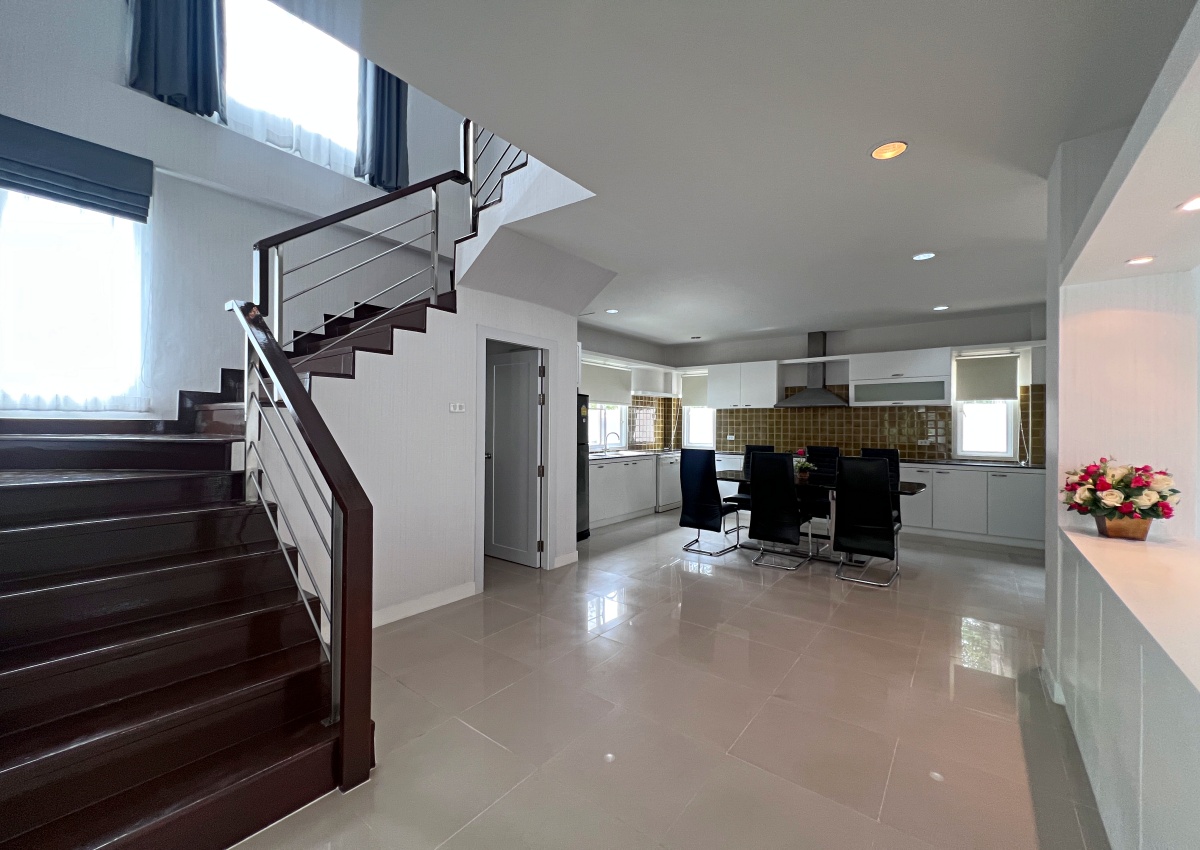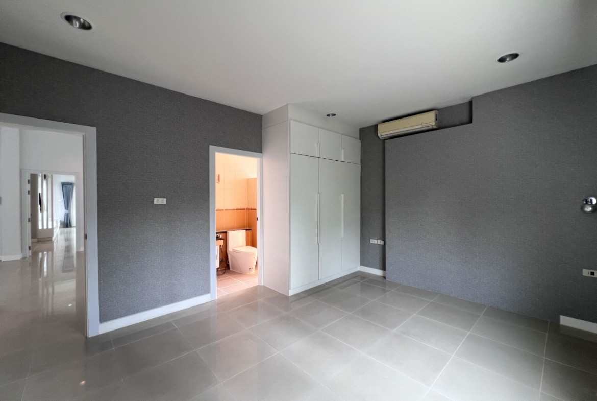 This property with an estimated living area 0f 250 sq.m 3 bedrooms and 3 bathrooms, maid room sit on a 144 sq.wha. plot of land, with private pool providing ample space for you and your family. It comes with a European kitchen, dining and living area and parking. As you enter the house, you’ll be greeted by a welcoming and well-lit living area. This beautiful house is available for sale in Thai name.