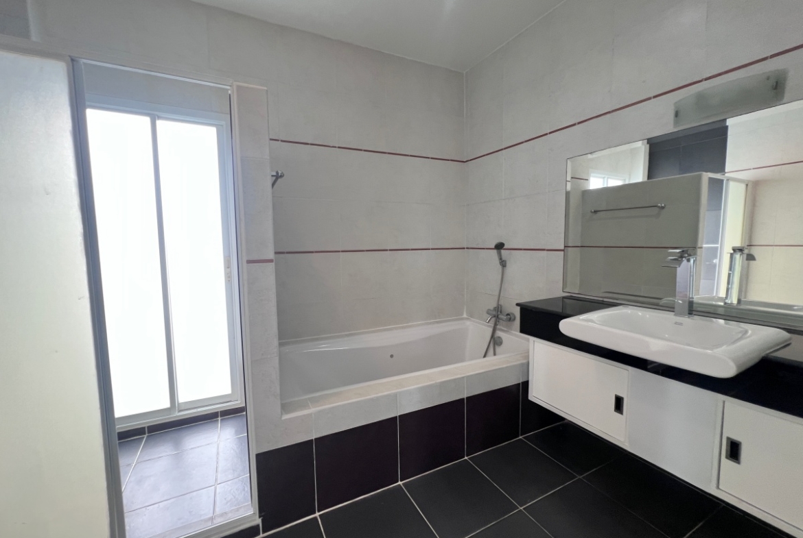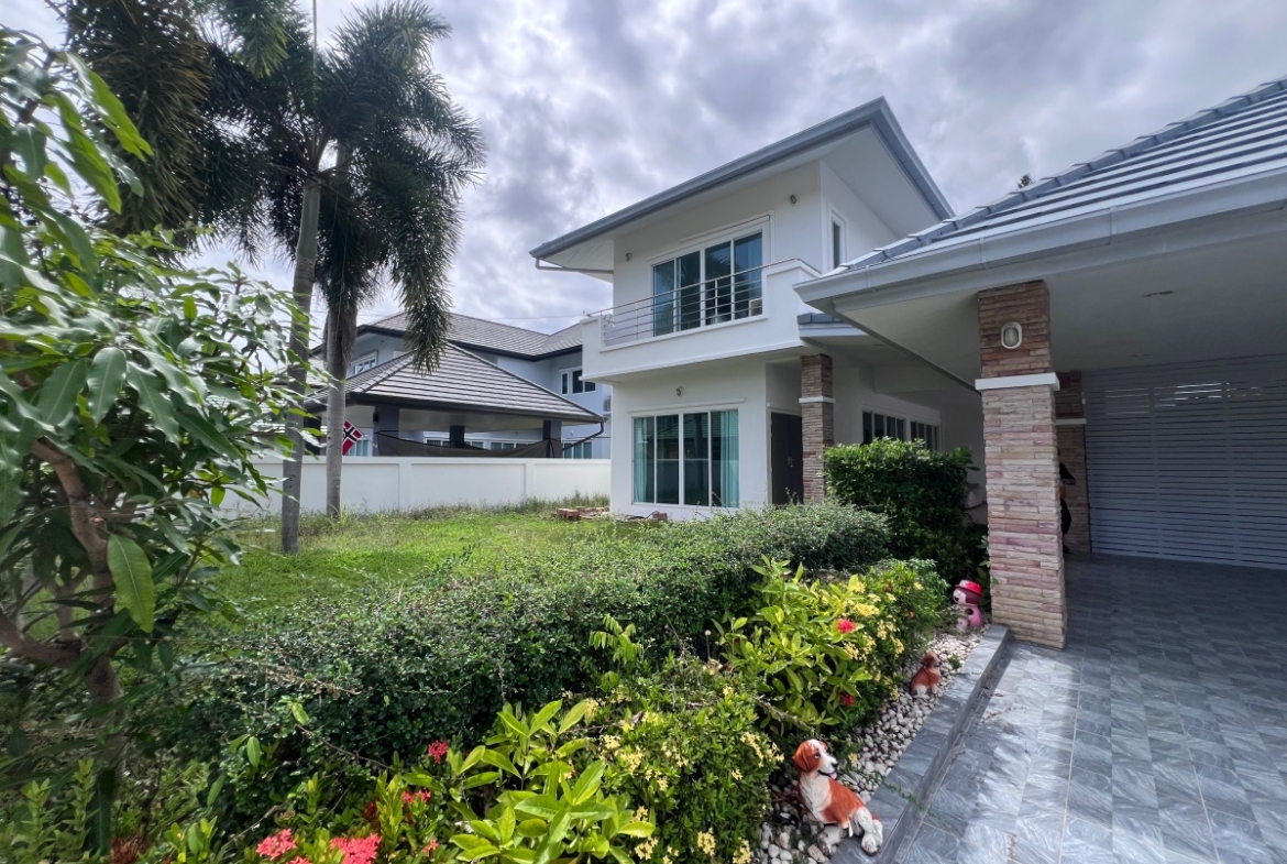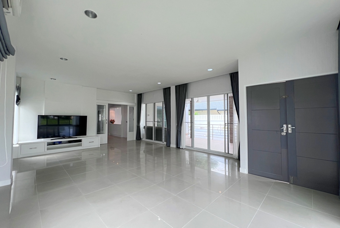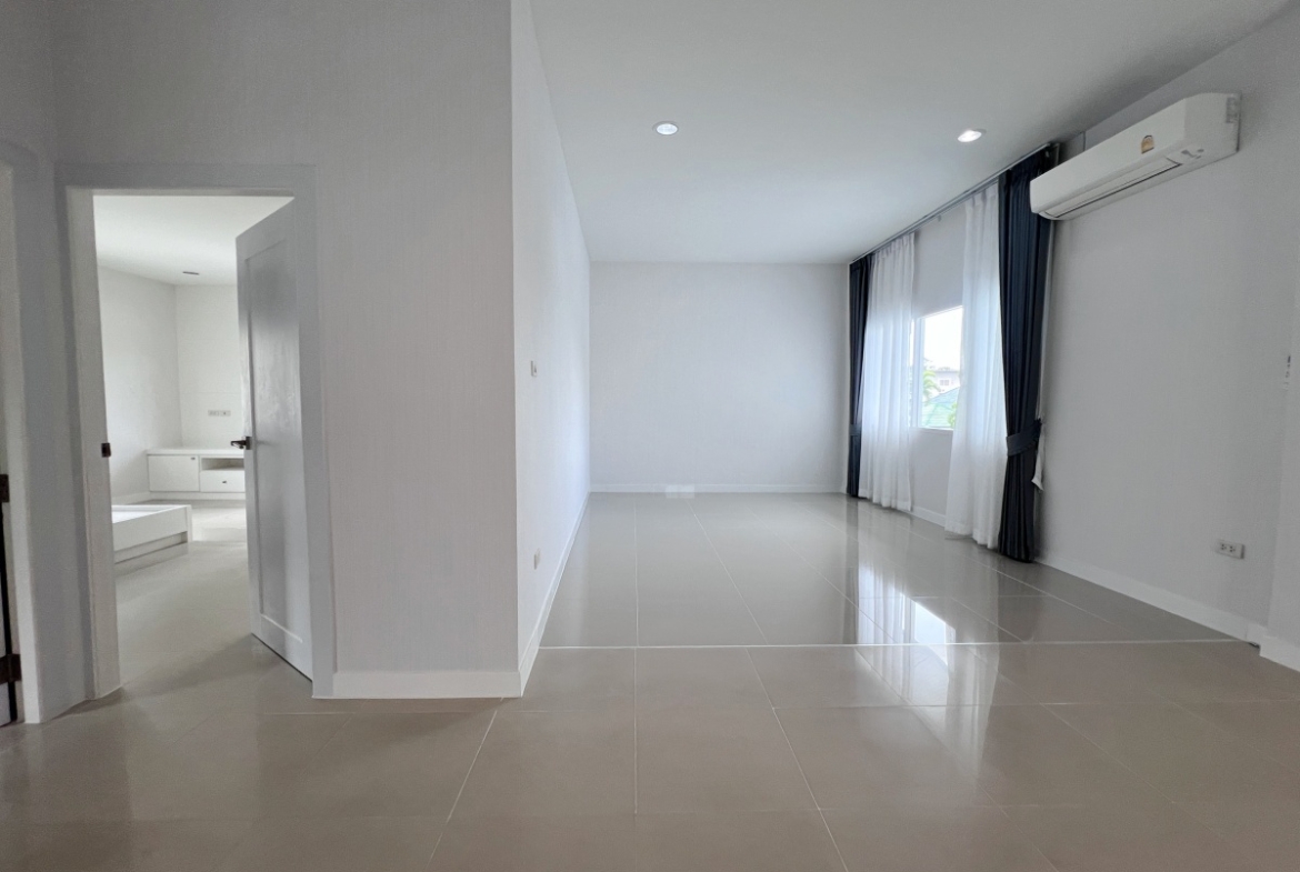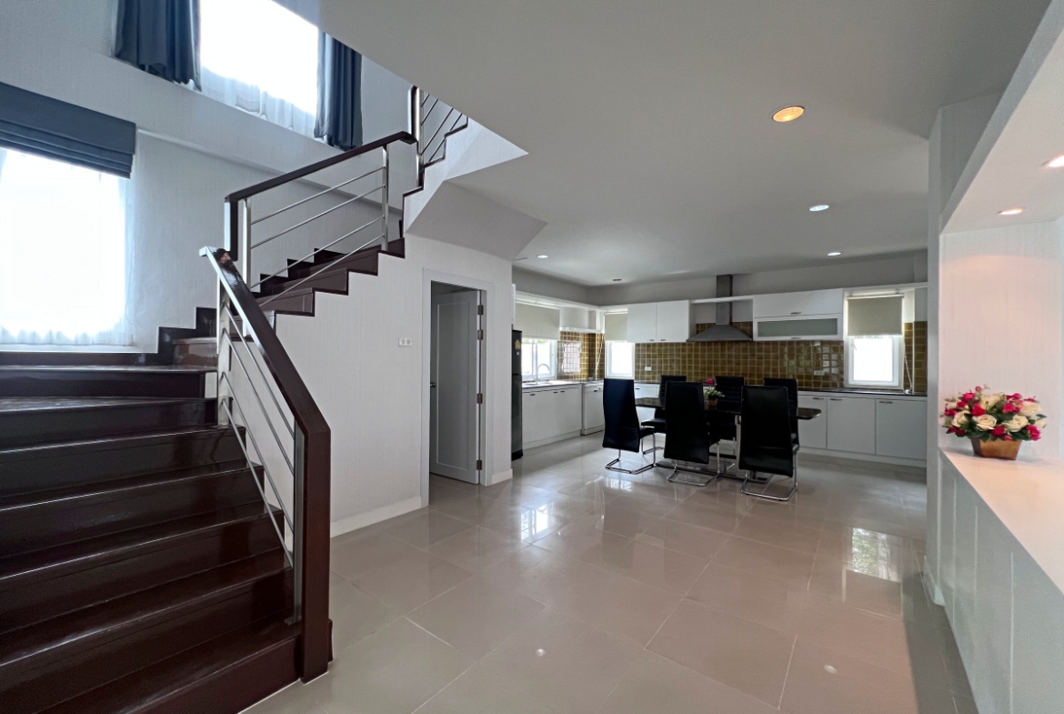 This property with an estimated living area 0f 250 sq.m 3 bedrooms and 3 bathrooms, maid room sit on a 144 sq.wha. plot of land, with private pool providing ample space for you and your family. It comes with a European kitchen, dining and living area and parking. As you enter the house, you’ll be greeted by a welcoming and well-lit living area. This beautiful house is available for sale in Thai name.