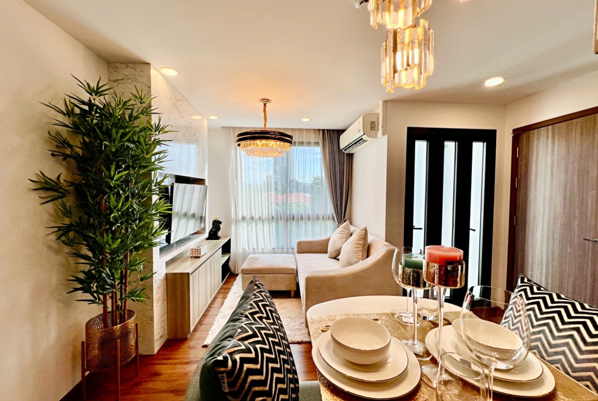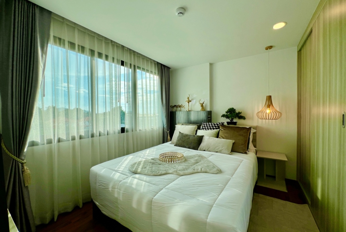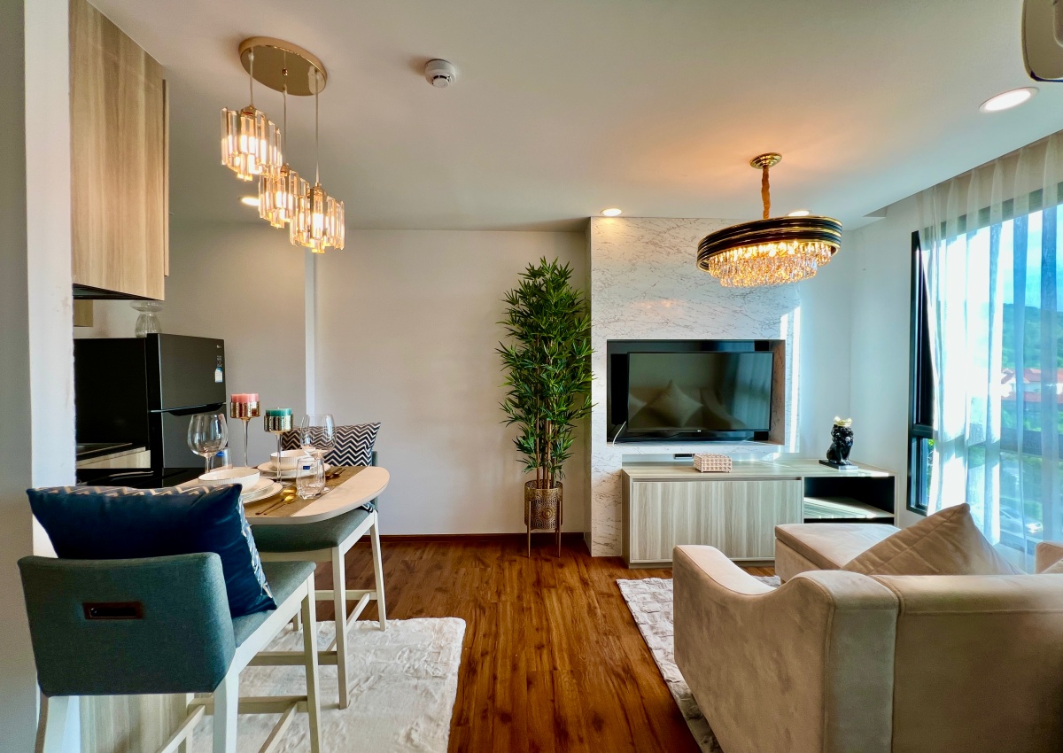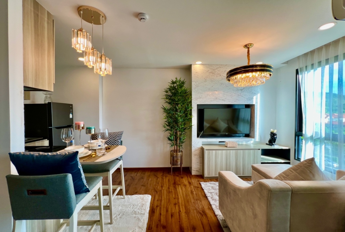 Stasia Residences Sriracha is a condo project Stasia Residences Sriracha construction was completed in 2019. and contains 8 total units, Units range from 1 bedroom to 2 bedroom. Stasia Residences Sriracha at has the following facilities: Swimming pool, Osen, Sauna, Gym, Golf simulator, Security, Car park. This 1 bedroom 1bathroom, building A offering 34.45 square meters of living space with a nice mountain view and sea view. It comes fully furnished with a modern kitchen, a dining area, every unit has a bathtub. This unit is for sale in Thai name ready to move in.