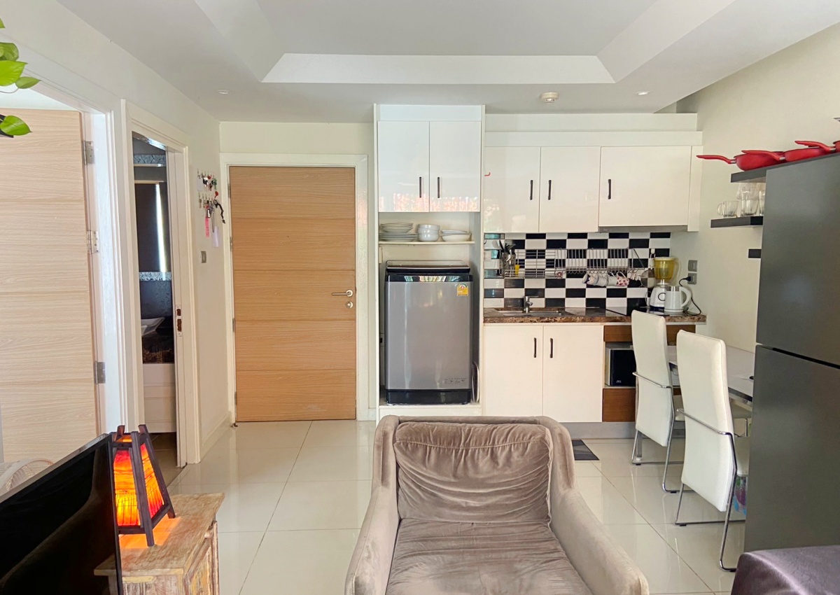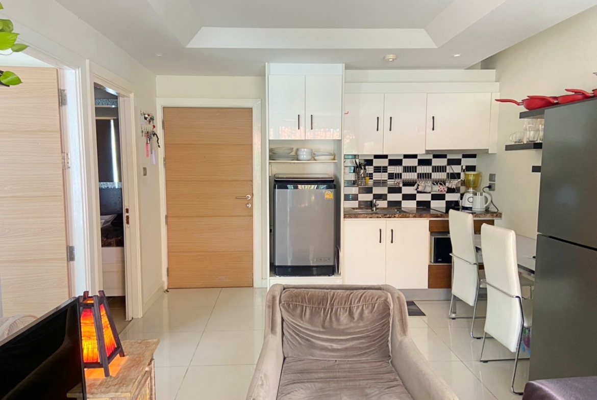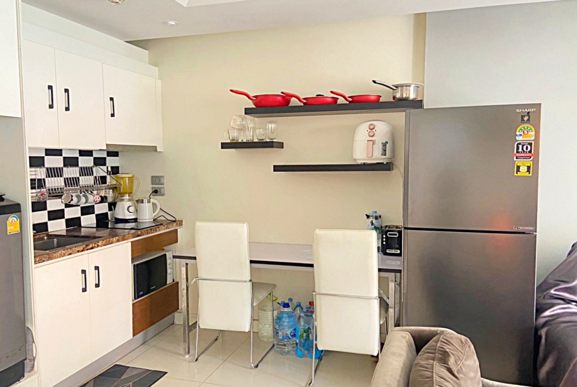 Sunset Boulevard 2 is a low-rise condominium offering a stunning Pattaya Beach view and allowing the residents to commune with the luxury and modern architecture. It is an 8-story low-rise condominium developed by Matrix Company, consisting of a single building and 87 residential units completed in 2013. It is easily and conveniently accessible. Besides, it is also close to Asia Pattaya Golf Course, and 550 meters close to Beach. The project has been thoughtfully designed in proportions with a great 24 hour security system, providing the residents with this ideal place for relaxation. This 1-bedroom unit is situated on the 1th floor with city view, offering 39 sqm of living space. It comes fully furnished with a modern kitchen, dining area, and a nice living area. This unit is for sale in Thai company name.