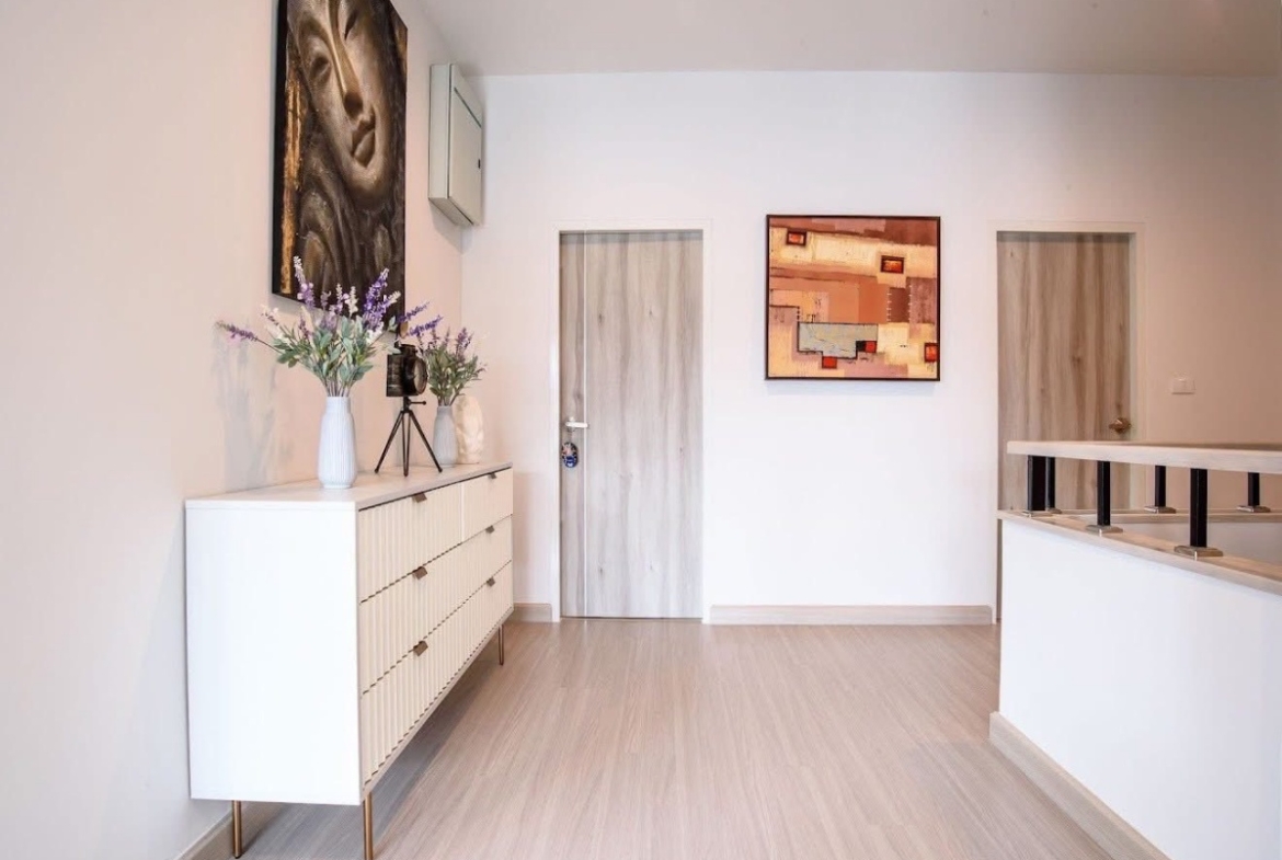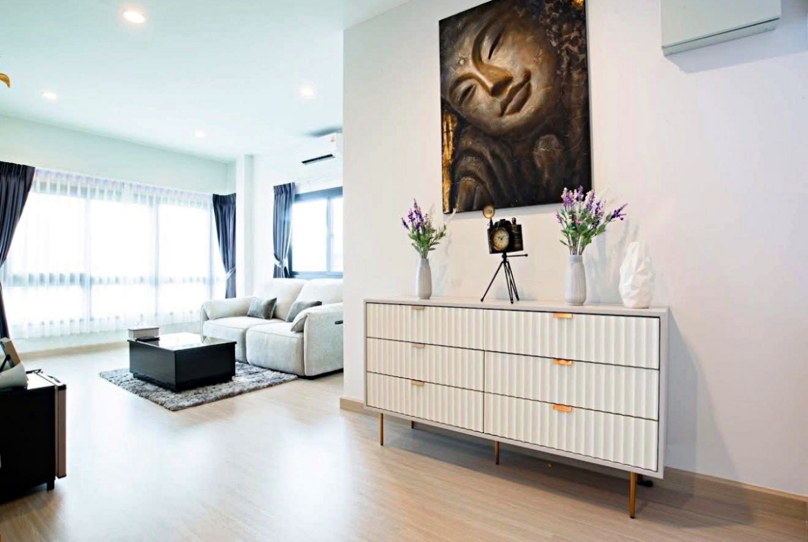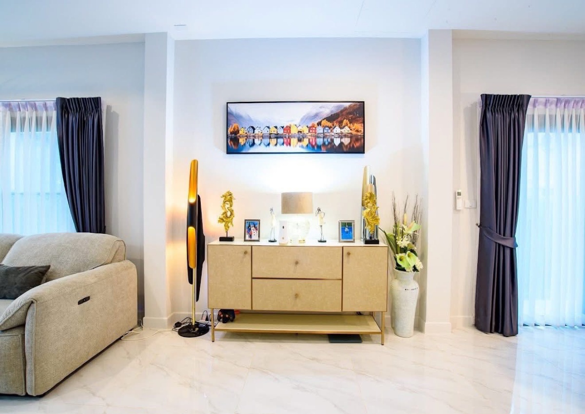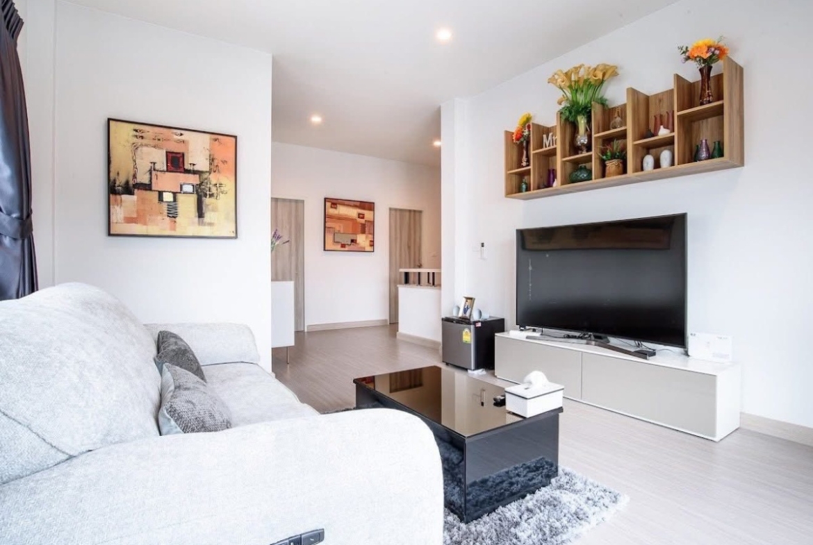 This house has 4 bedrroms 4 bathrooms, 206 of living space sitting on a plot of land 59.8 sq.wha with a carpark. It comes fully furnished modern kitchen, dining area, living area. This house for sale in Thai name.