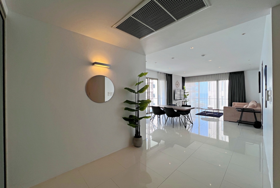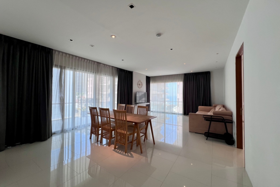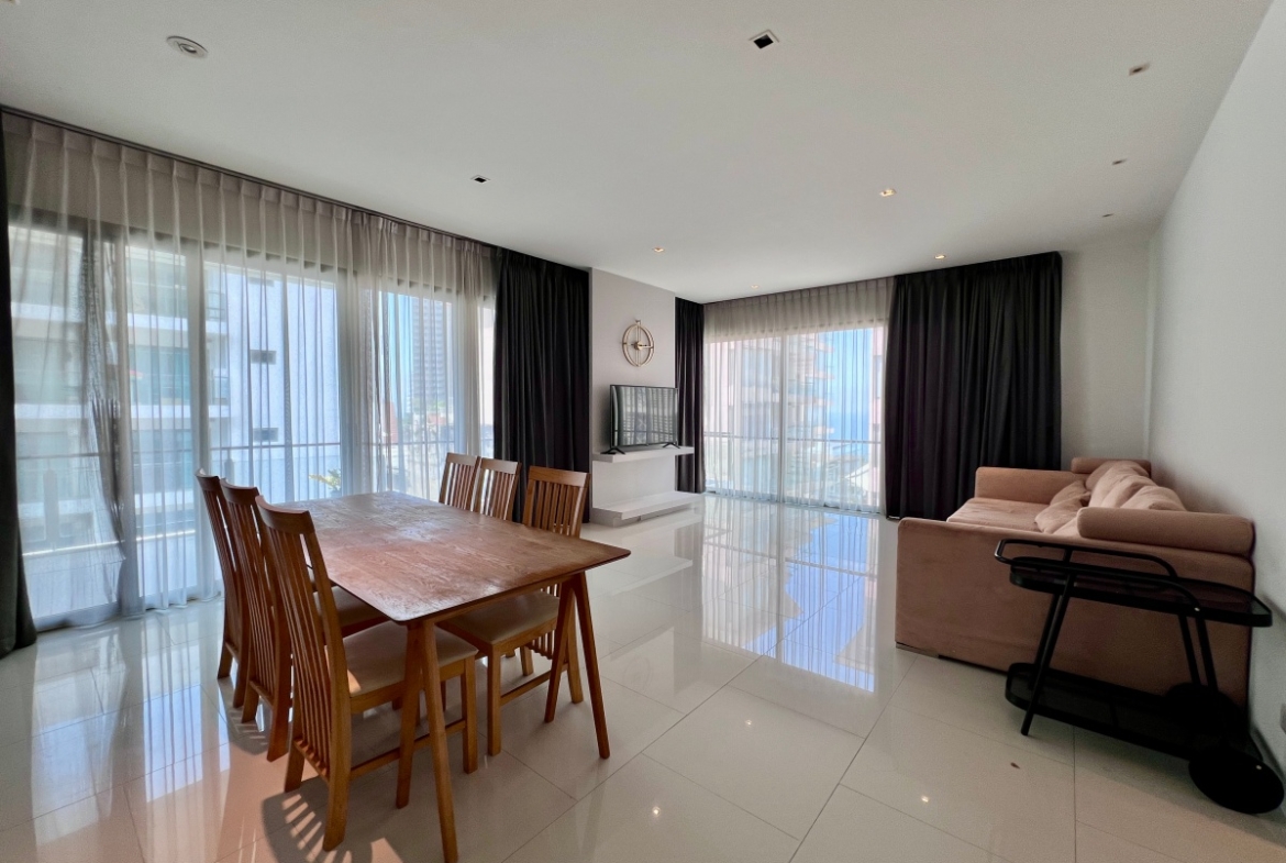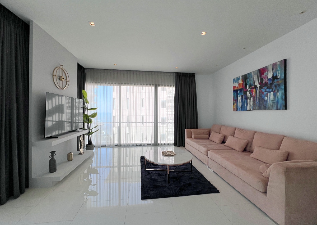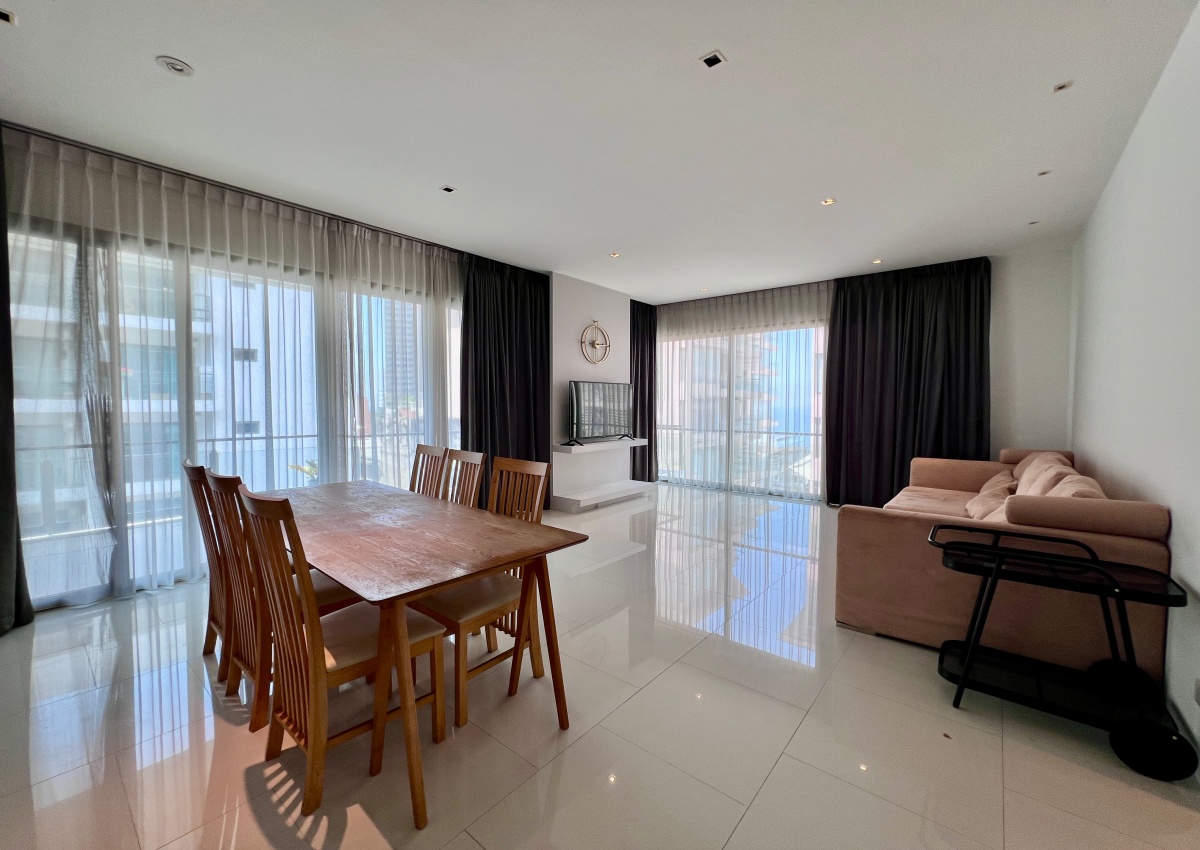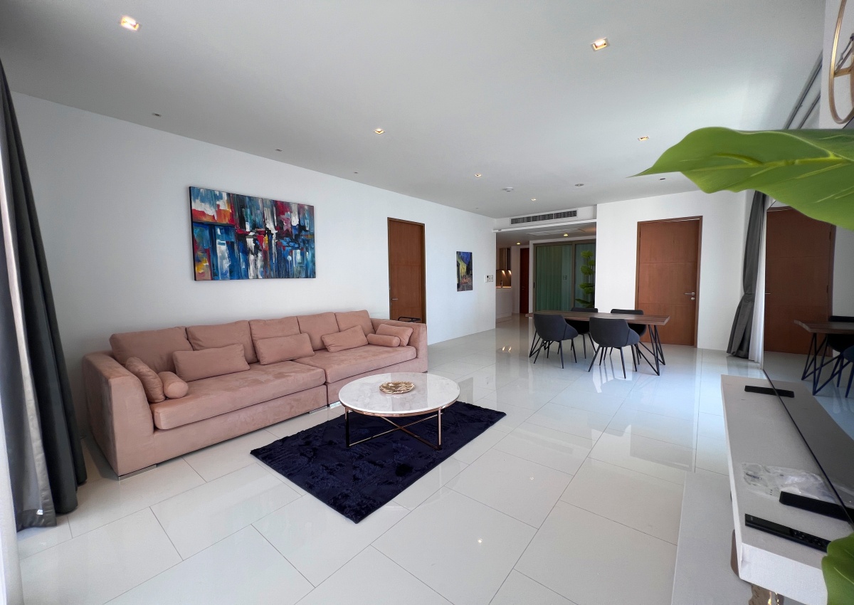 The Sanctuary Wongamat is located in Pattaya-Naklua Road,a low-rise condominium with meticulous design and a gigantic garden the ultimate relaxation. Enjoy a peaceful beach vibe in just a few steps to Wongamat Beach. Facilities, including a swimming pool, a garden, a gym, a covered car park, and 24-hour security. This unit features 3 bedrooms, 3 bathrooms, on the 6 floor and offers 148 sqm. of living space. It comes fully furnished with a European kitchen, dining area, living room, and balcony with pool and the sanctuary of truth view. This apartment is available for rent ready to move in.