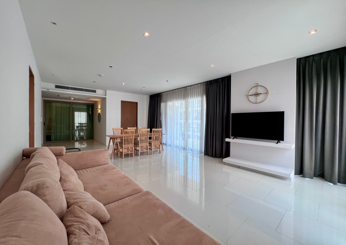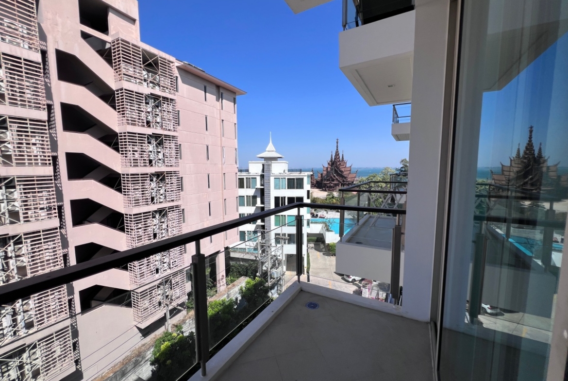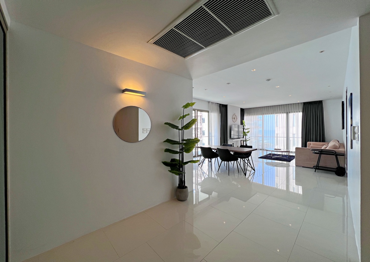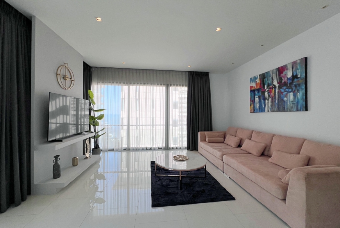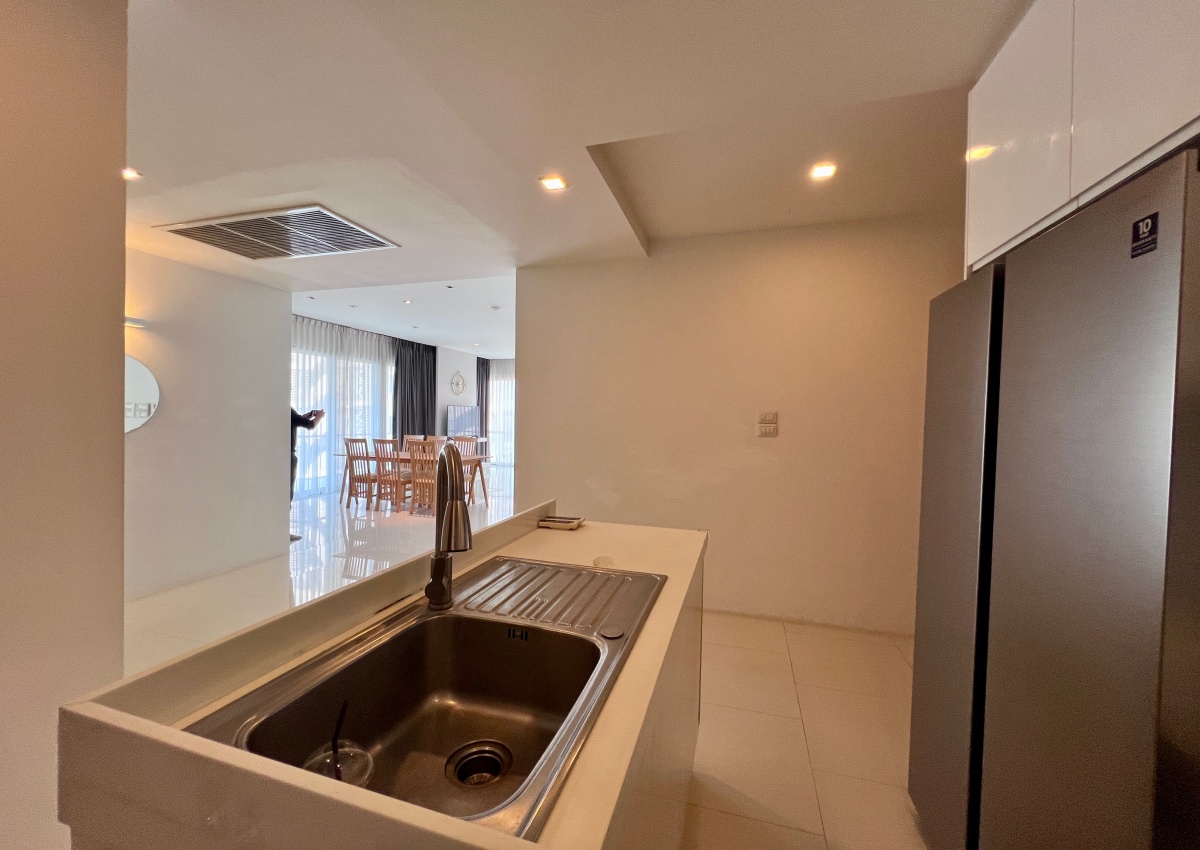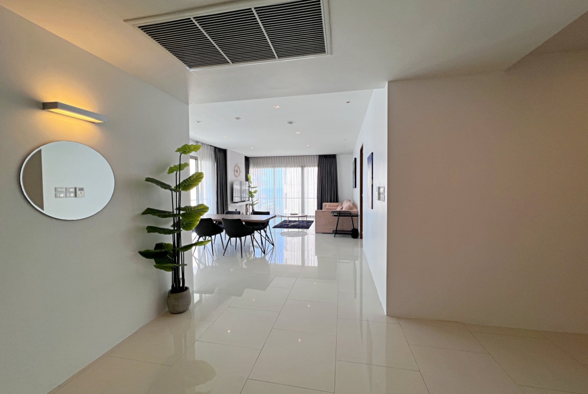 The Sanctuary Wongamat is located in Pattaya-Naklua Road,a low-rise condominium with meticulous design and a gigantic garden the ultimate relaxation. Enjoy a peaceful beach vibe in just a few steps to Wongamat Beach. Facilities, including a swimming pool, a garden, a gym, a covered car park, and 24-hour security. This unit features 3 bedrooms, 3 bathrooms, on the 6 floor and offers 148 sqm. of living space. It comes fully furnished with a European kitchen, dining area, living room, and balcony with pool and the sanctuary of truth view. This apartment is available for rent ready to move in.