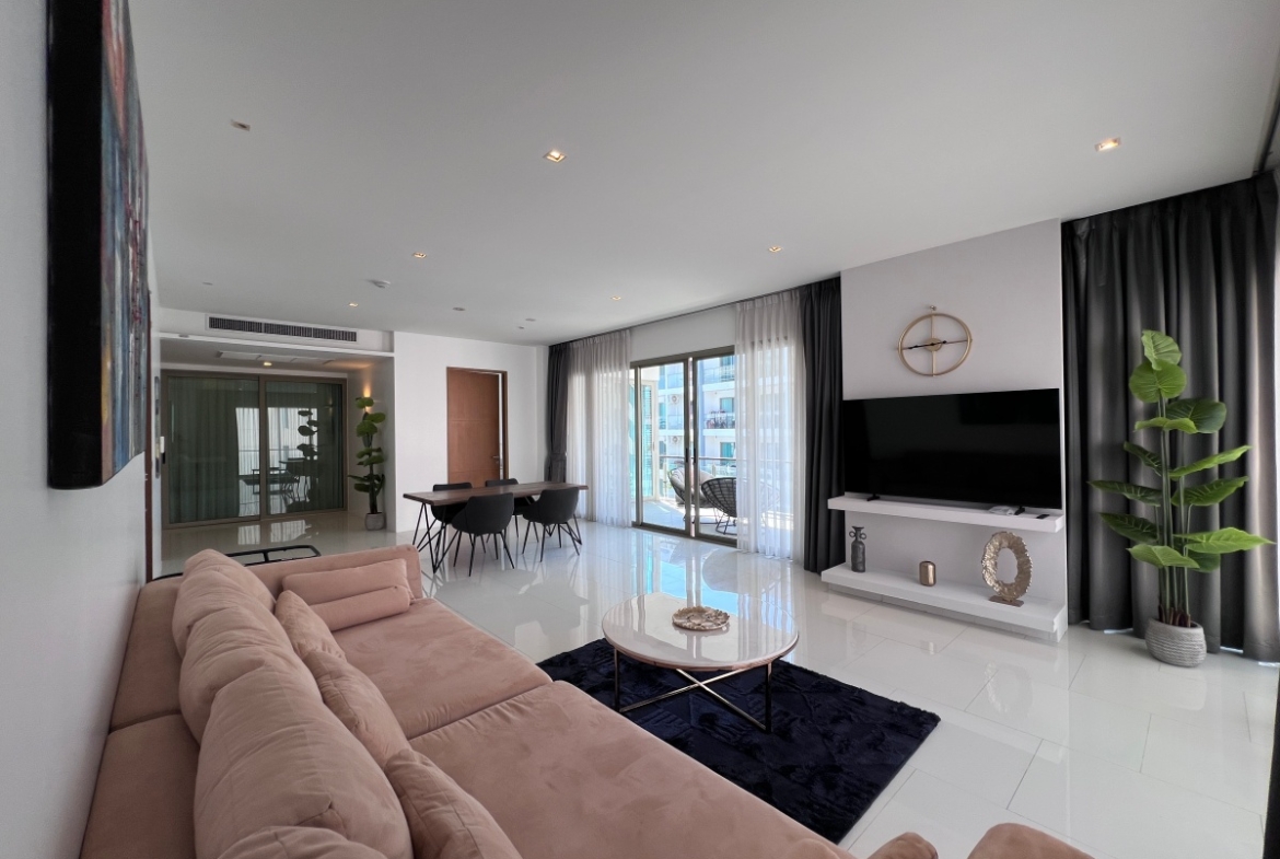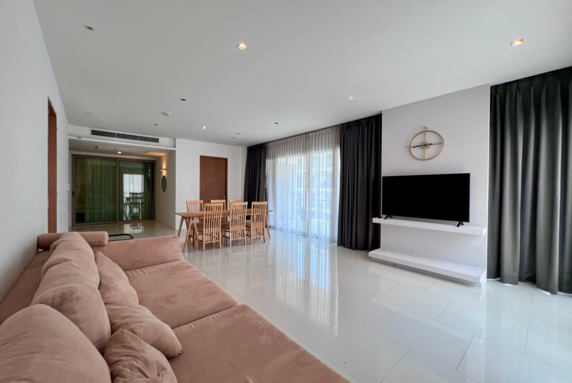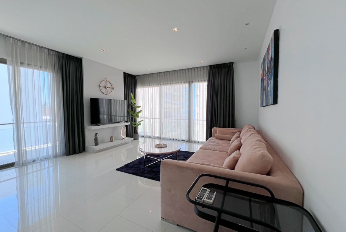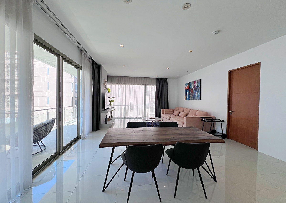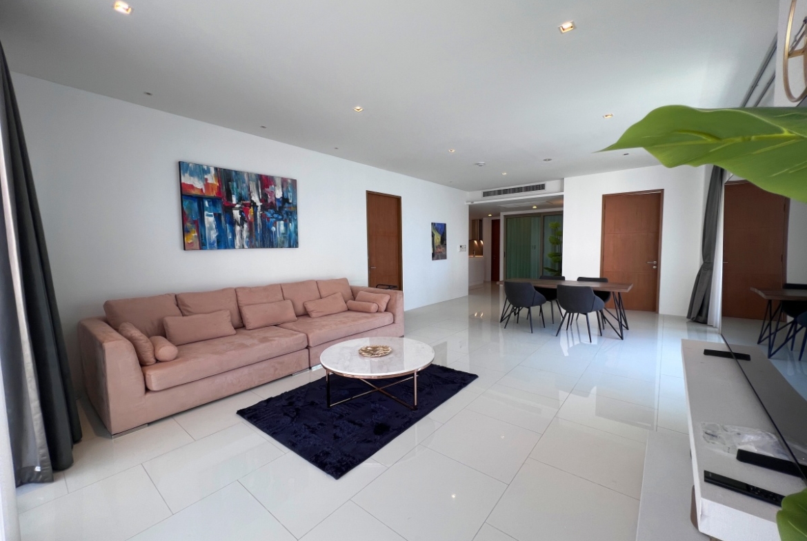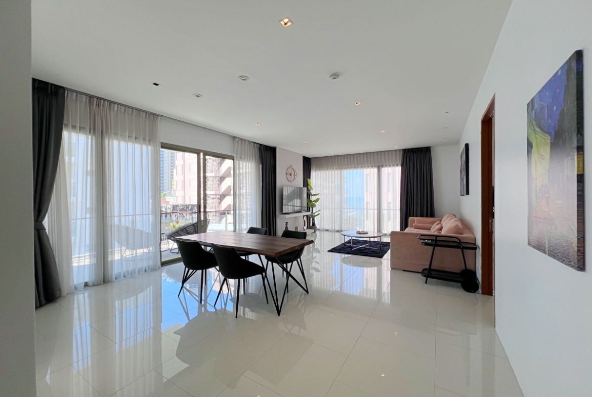 The Sanctuary Wongamat is located in Pattaya-Naklua Road,a low-rise condominium with meticulous design and a gigantic garden the ultimate relaxation. Enjoy a peaceful beach vibe in just a few steps to Wongamat Beach. Facilities, including a swimming pool, a garden, a gym, a covered car park, and 24-hour security. This unit features 3 bedrooms, 3 bathrooms, on the 6 floor and offers 148 sqm. of living space. It comes fully furnished with a European kitchen, dining area, living room, and balcony with pool and the sanctuary of truth view. This apartment is available for rent ready to move in.