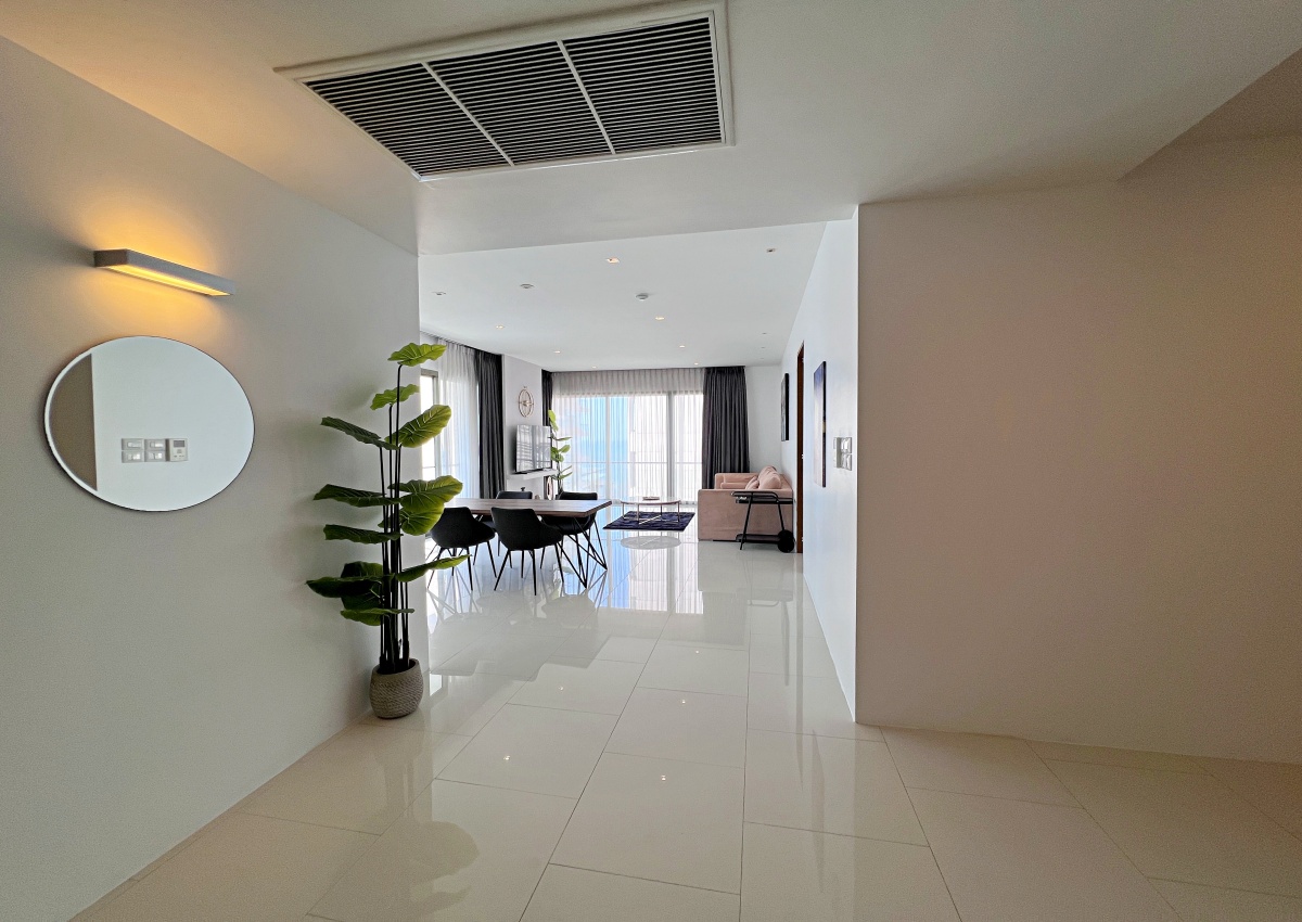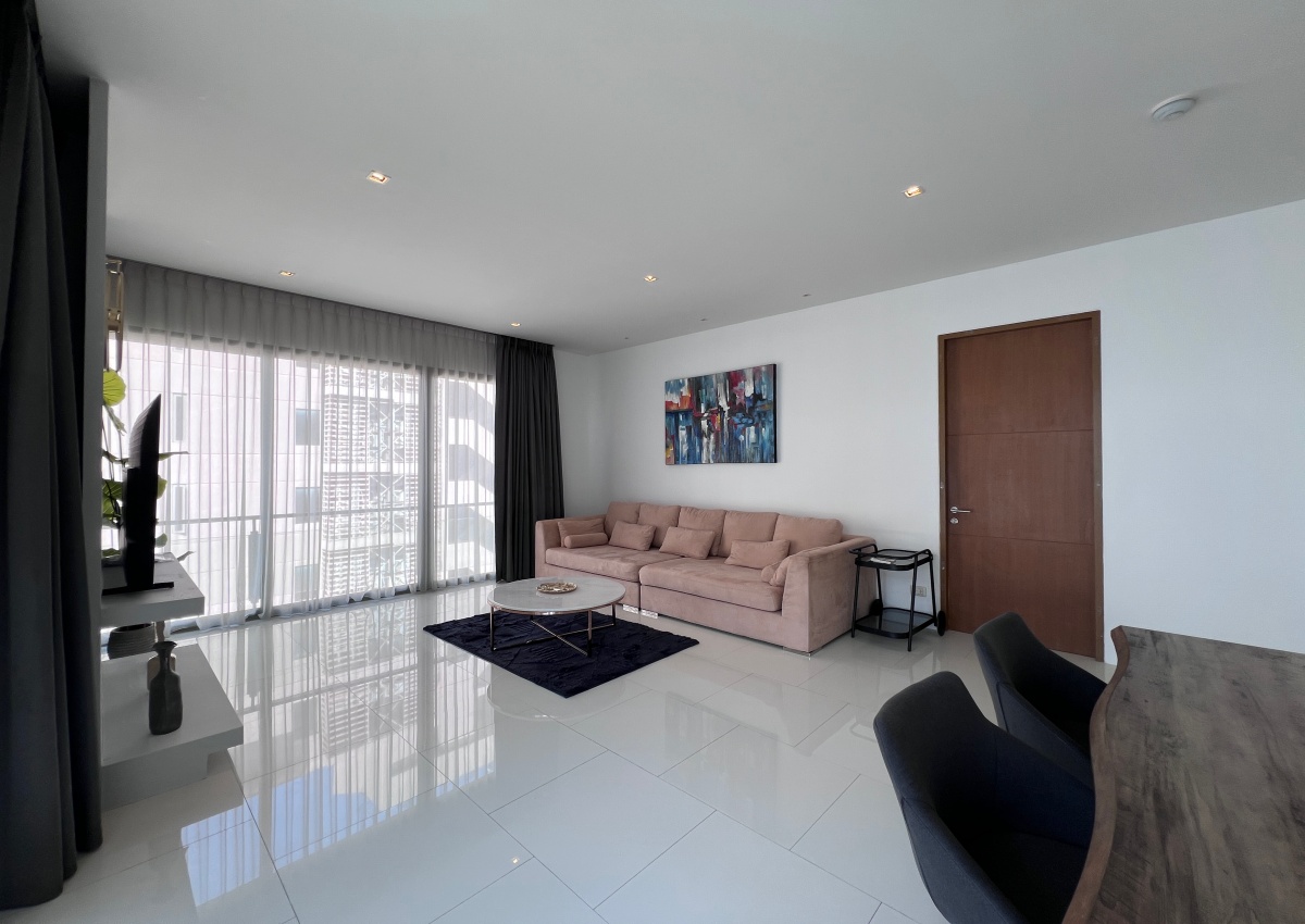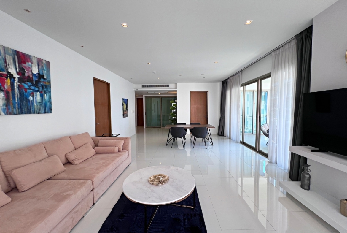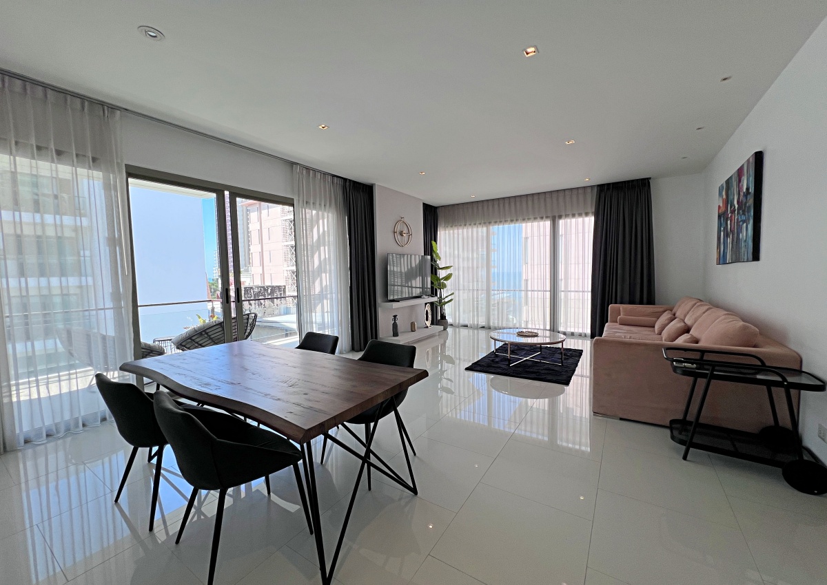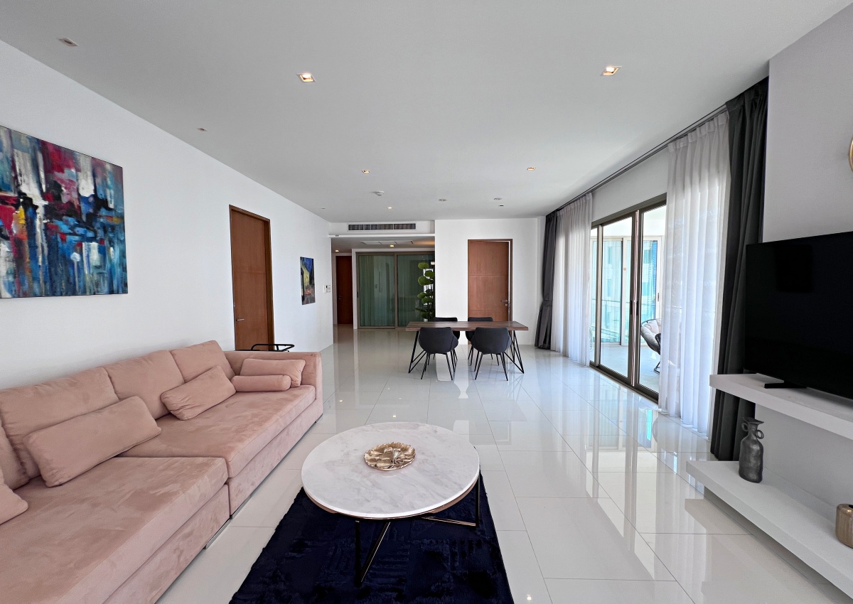 The Sanctuary Wongamat is located in Pattaya-Naklua Road,a low-rise condominium with meticulous design and a gigantic garden the ultimate relaxation. Enjoy a peaceful beach vibe in just a few steps to Wongamat Beach. Facilities, including a swimming pool, a garden, a gym, a covered car park, and 24-hour security. This unit features 3 bedrooms, 3 bathrooms, on the 6 floor and offers 148 sqm. of living space. It comes fully furnished with a European kitchen, dining area, living room, and balcony with pool and the sanctuary of truth view. This apartment is available for rent ready to move in.