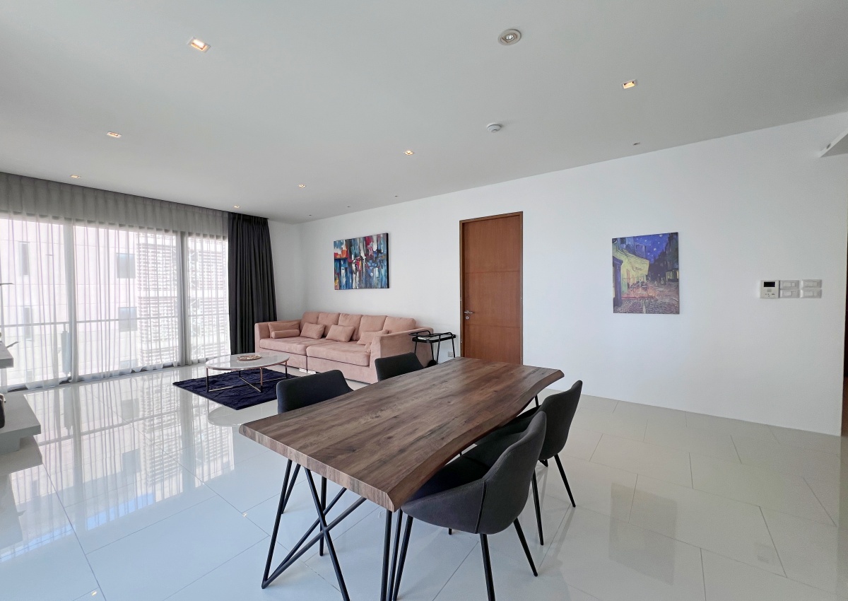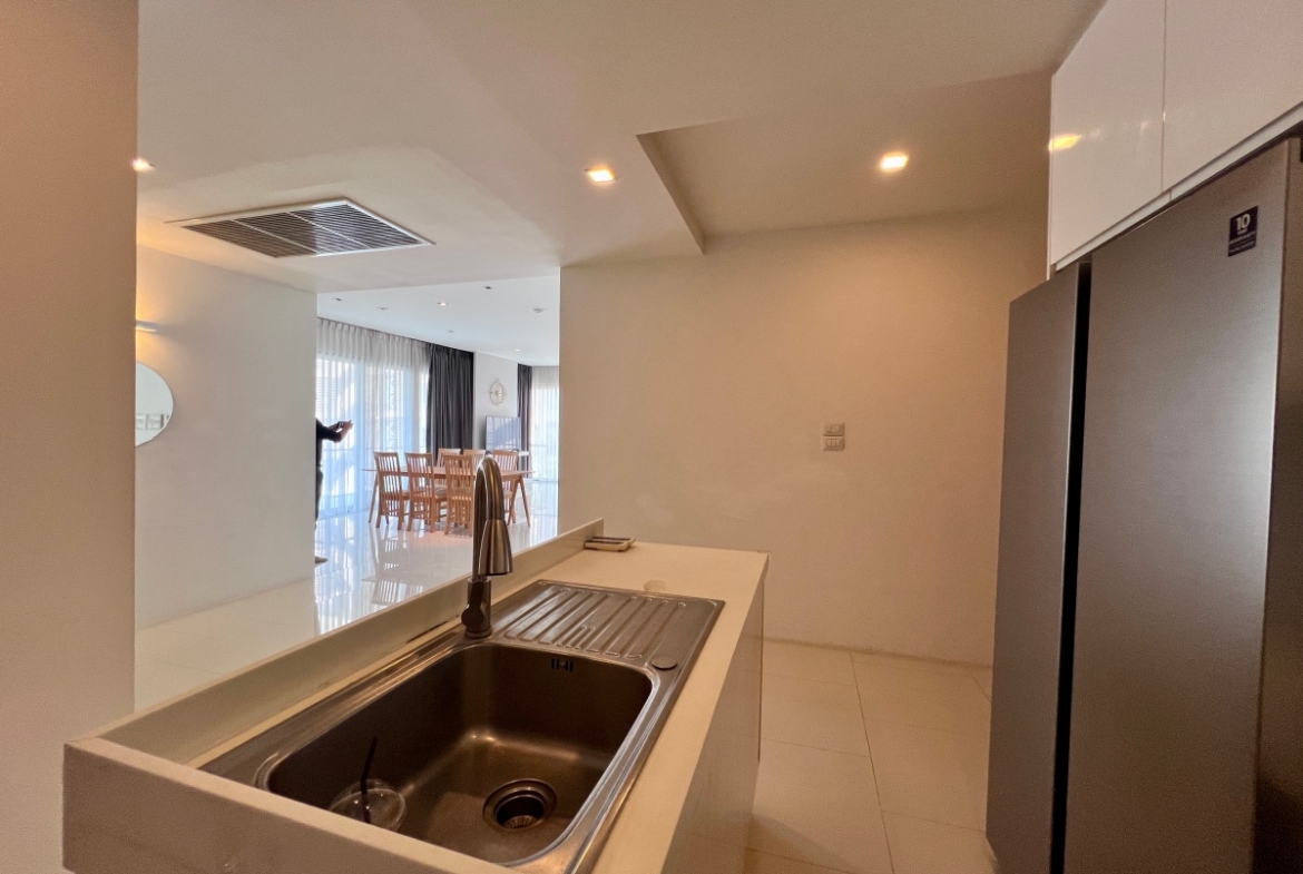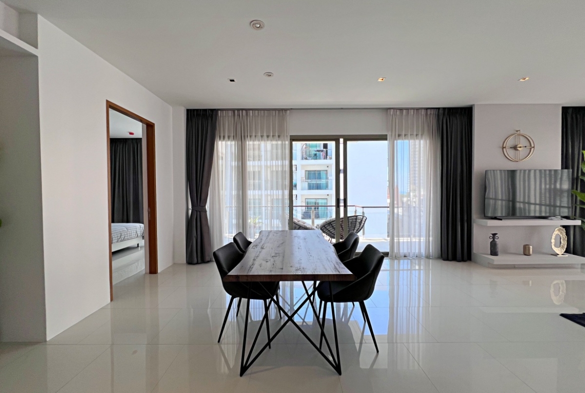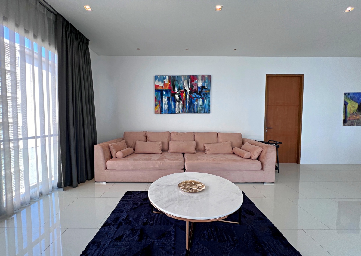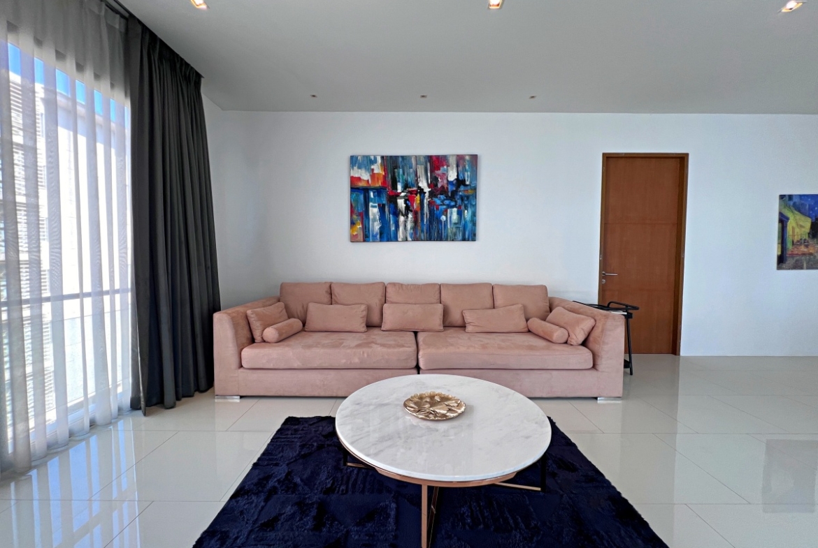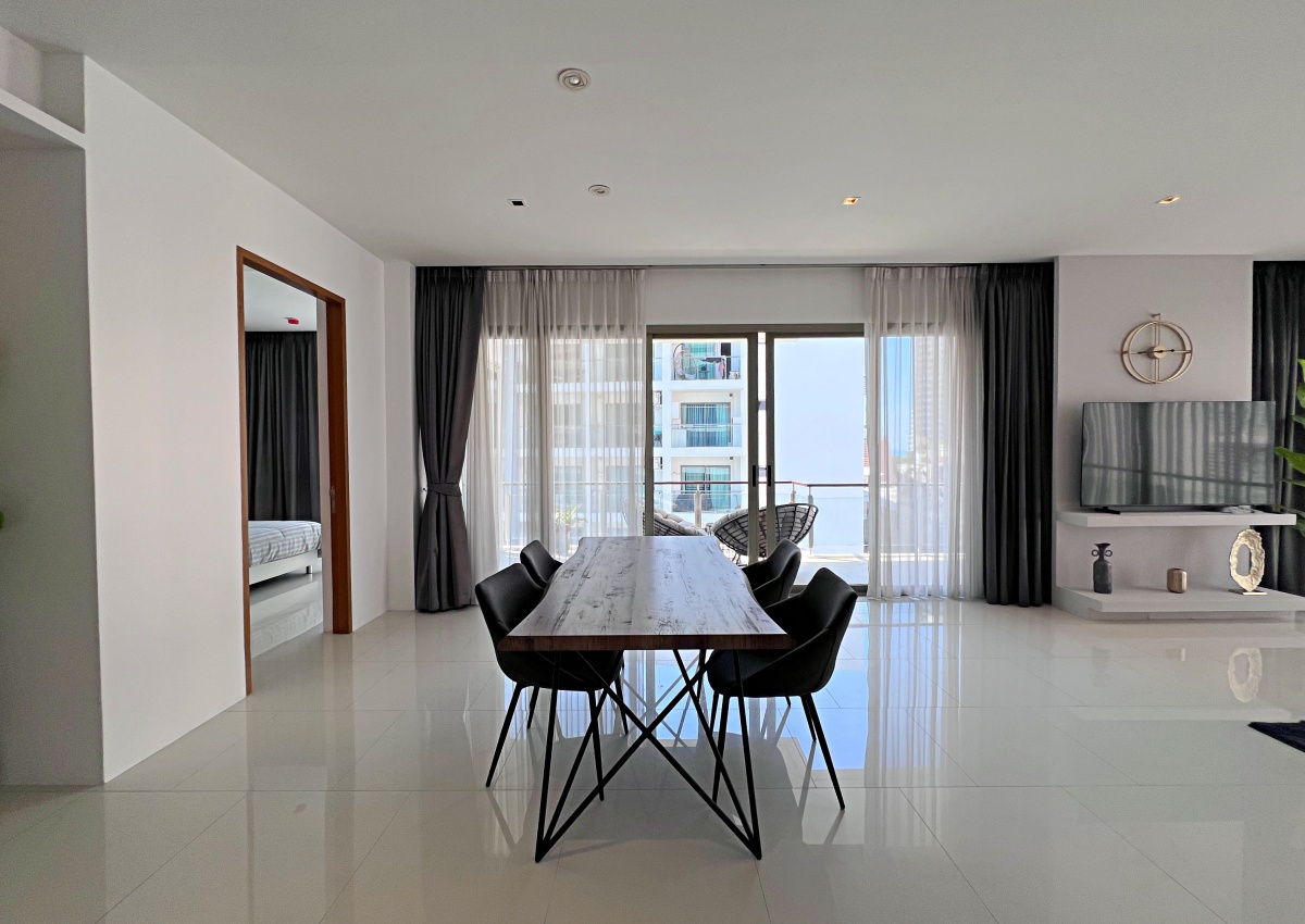 The Sanctuary Wongamat is located in Pattaya-Naklua Road,a low-rise condominium with meticulous design and a gigantic garden the ultimate relaxation. Enjoy a peaceful beach vibe in just a few steps to Wongamat Beach. Facilities, including a swimming pool, a garden, a gym, a covered car park, and 24-hour security. This unit features 3 bedrooms, 3 bathrooms, on the 6 floor and offers 148 sqm. of living space. It comes fully furnished with a European kitchen, dining area, living room, and balcony with pool and the sanctuary of truth view. This apartment is available for rent ready to move in.
