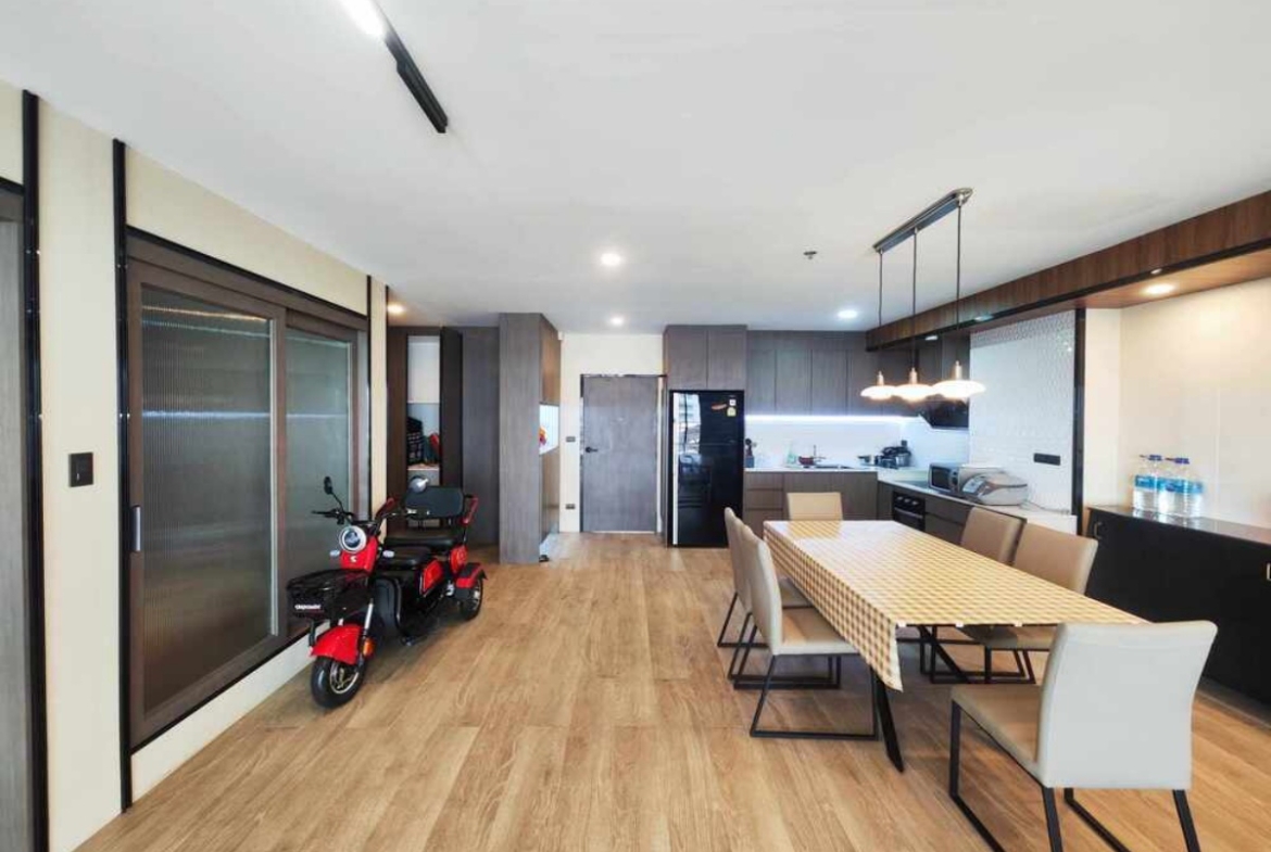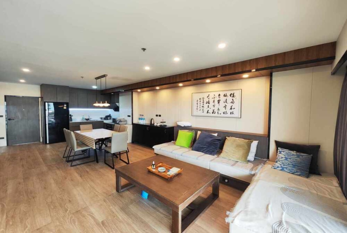 View Talay 5, a unique high-rise condominium located in Jomtien easy beach access . The rooms come with a stunning sea view and a full set of quality furniture. Comfortable with complete facilities such as a large swimming pool, parking space, a garden, and a security system for 24 hours. This 2 bedrooms is on 9 floor and offers 101 sqm of living space. It comes fully furnished European kitchen, dining area, and living area. This unit is available for sale in a foreign name and is ready to move in!