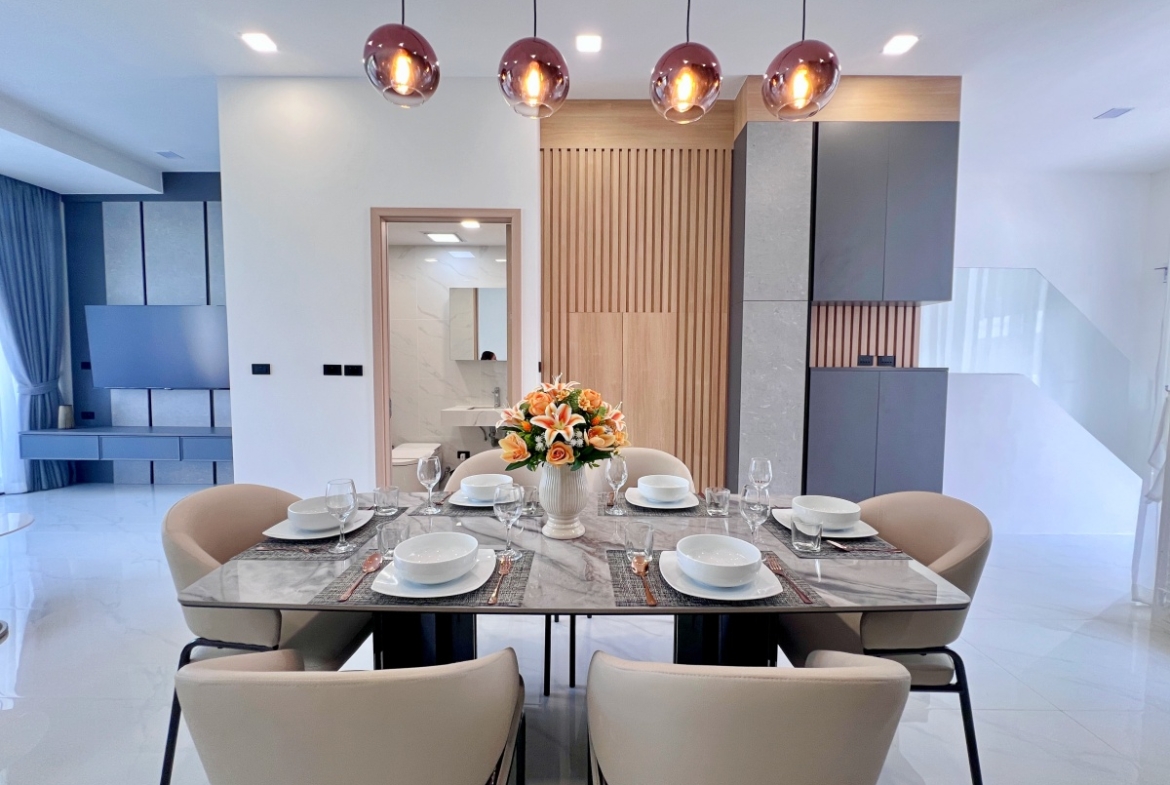 Villa La Richie, an exquisite residential development located in the vibrant neighborhood of Na Kluea, Pattaya, Chon Buri. This exceptional project offers a luxurious and comfortable living experience, catering to those seeking an elevated lifestyle. Villa La Richie boasts a total of 26 meticulously designed units, each offering an unparalleled level of quality and sophistication. With attention to detail and modern aesthetics, these residences are crafted to meet the highest standards of contemporary living. Villa La Richie has the following facilities: Swimming pool, Gym, Security, Car park, and Garden. This property with an estimated living area of 180 sq.m 3 bedrooms and 3 bathrooms on a 24 sq.wha plot of land, with private jacuzzi. It comes fully furnished. As you enter the house, you’ll be greeted by a welcoming and well-lit large living area. This beautiful house is available for rent ready to move-in.